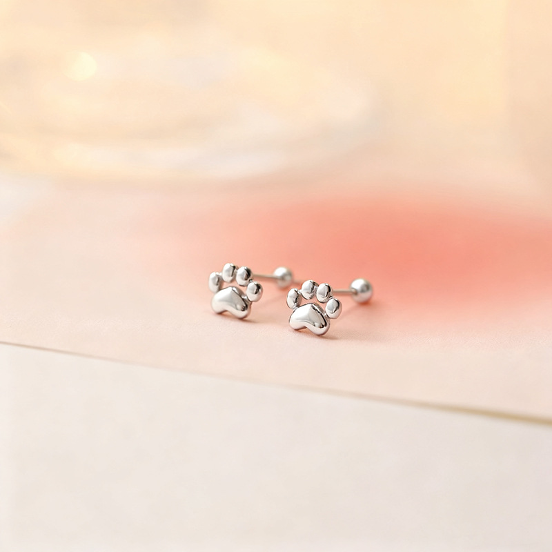 S999纯银可爱小巧猫爪耳钉女简约少女ins风猫咪耳环学生秋冬耳饰