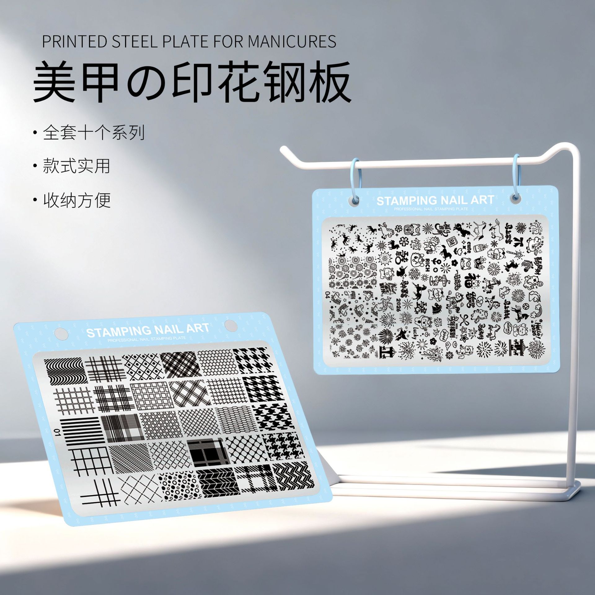 美甲印花钢板格纹法式线条印花钢板指甲装饰美甲工具转印图案工具