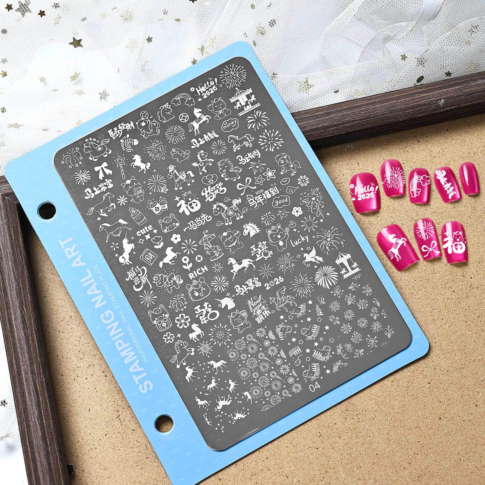 爆款新年美甲印花钢板马年马到成功爱心图案指甲转印模板美甲工具