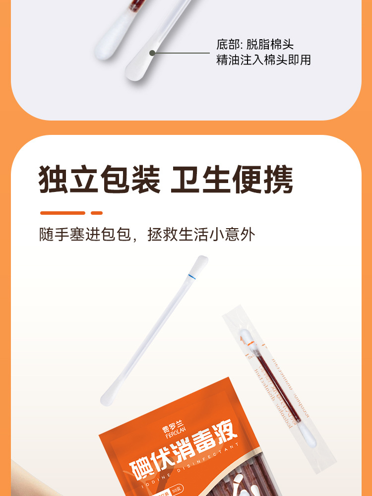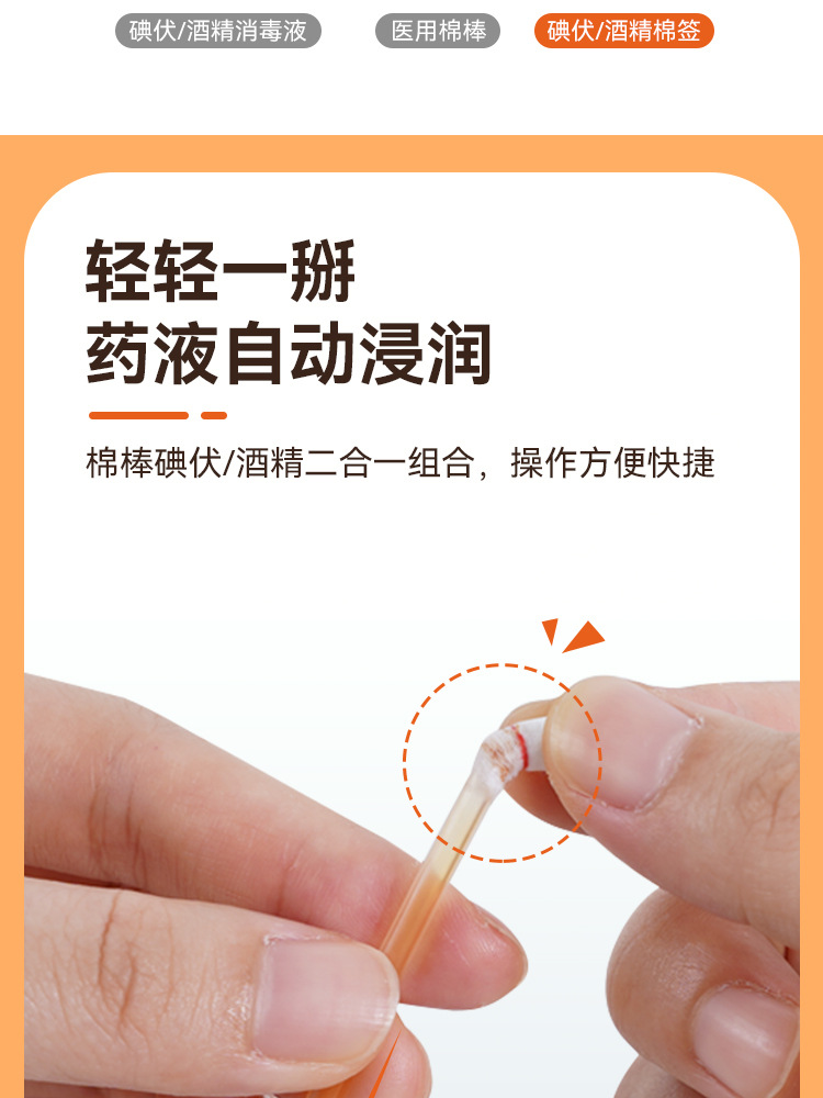碘伏消毒棉签一次性户外旅行军训应急伤口立包装消毒碘伏棉棒