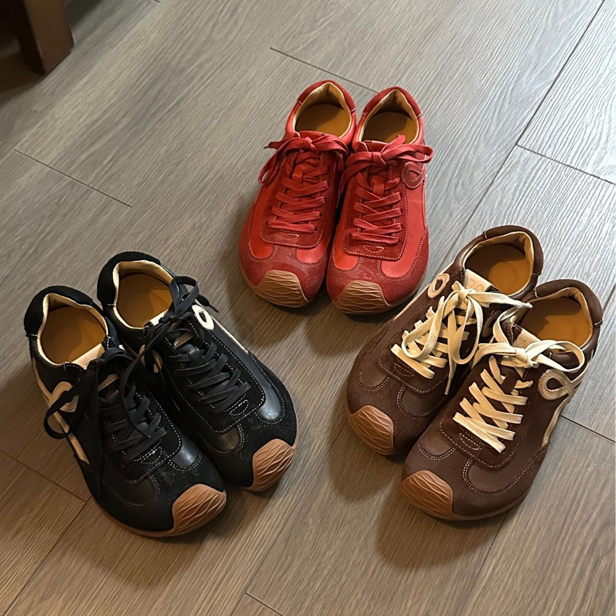 【グレープフルーツ阿甘靴】古典的なレトロなカジュアルスポーツシューズの真皮の厚い底が高くなった学生の運動徳訓靴