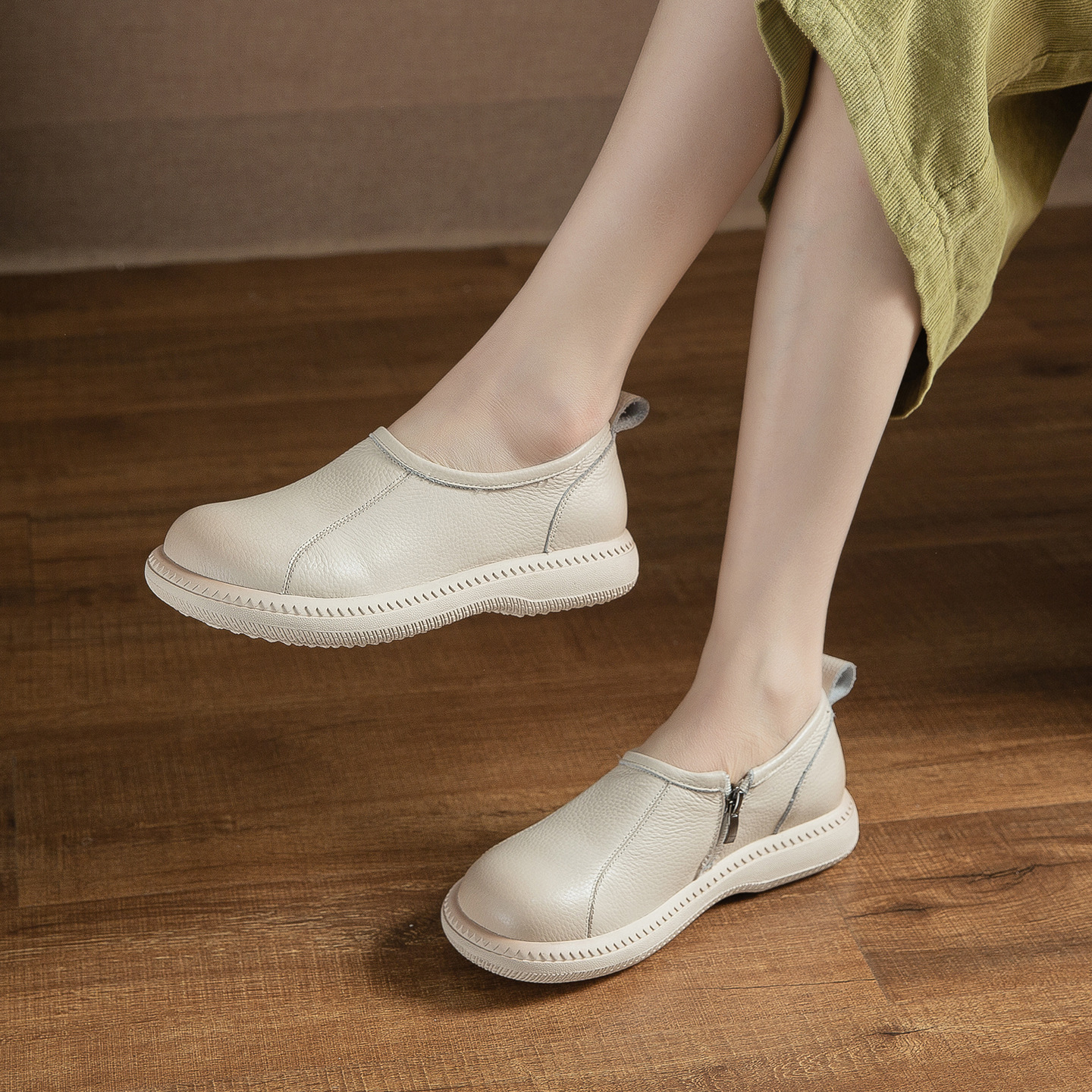 本革レトロ婦人靴第一層牛革2025夏新作フラットシューズ片足森スタイルパンプス女性用