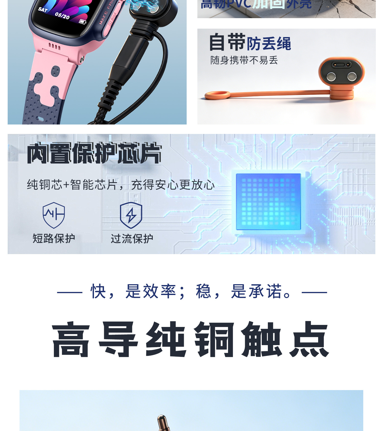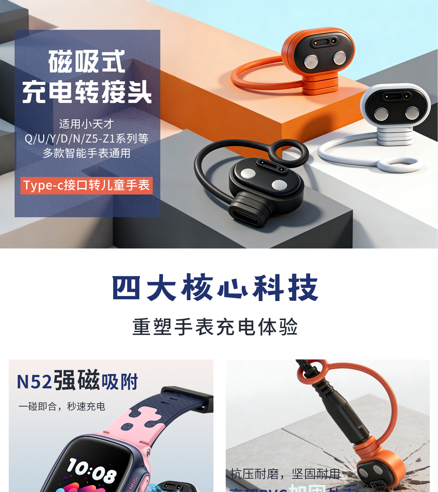 适用小天才儿童手表Z7S充电转接头Z8Z9Z10Z11磁吸充电线Z6AZ8A