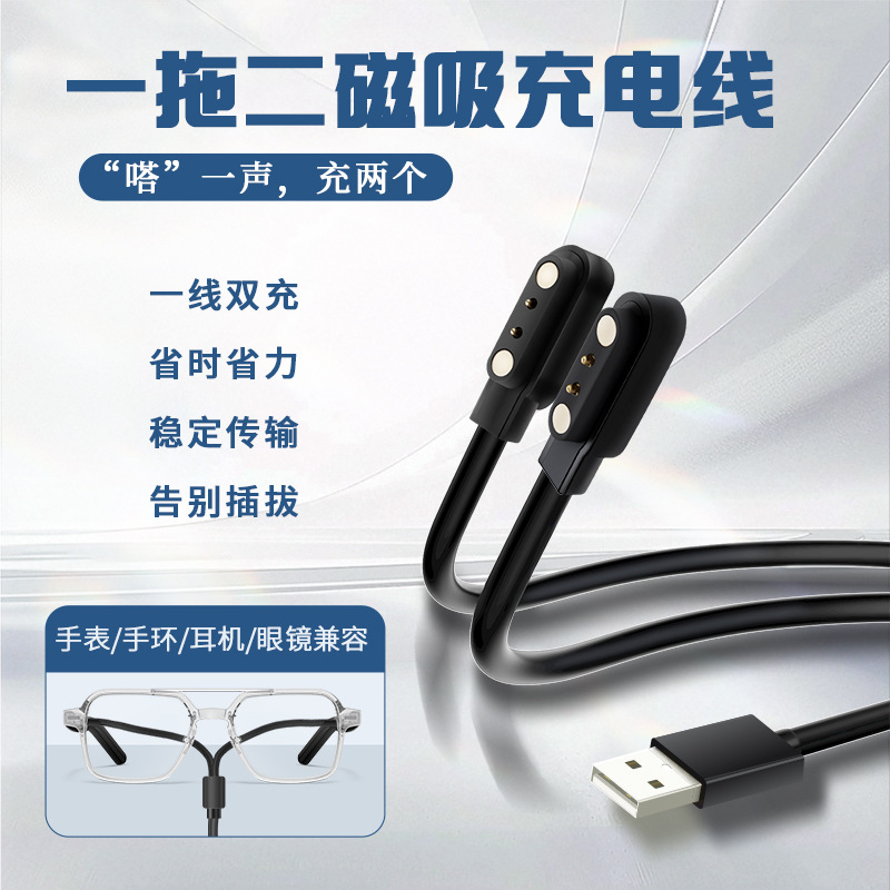 通用款4.0mm智能蓝牙眼镜一拖二充电线耳机手表二合一磁吸充电器
