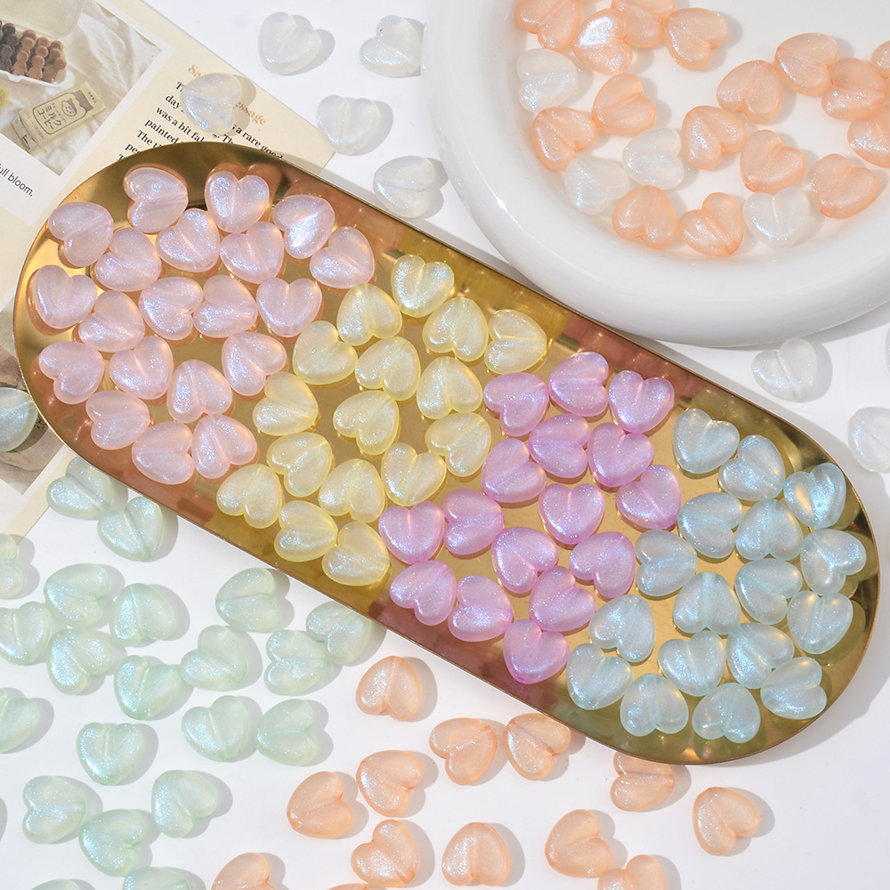 亚克力珠光扁爱心人鱼姬串珠 手工diy手链手机链饰品配件材料散珠