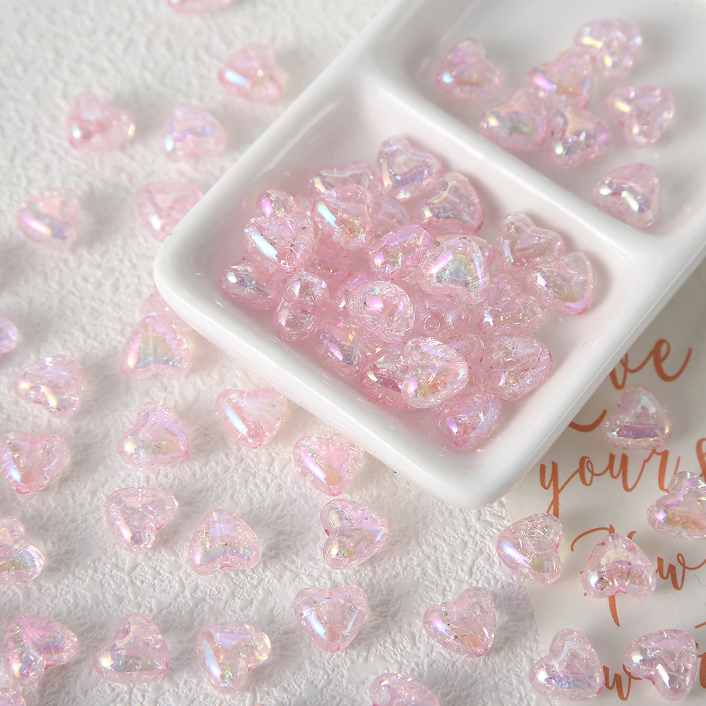 亚克力电镀裂纹竖孔爱心散珠 手工diy手链项链材料饰品配件串珠