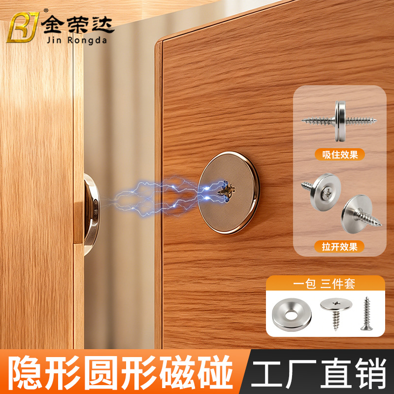 简易磁铁门吸推拉柜门0零空间强强磁力吸送螺钉 超薄碰珠门碰柜吸