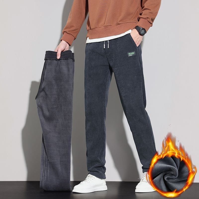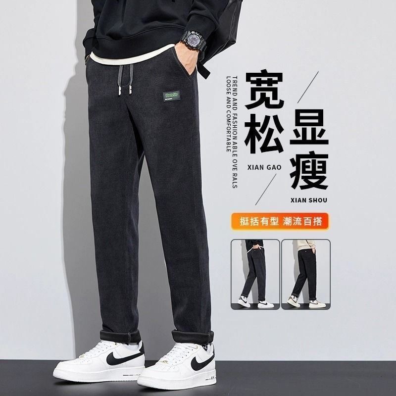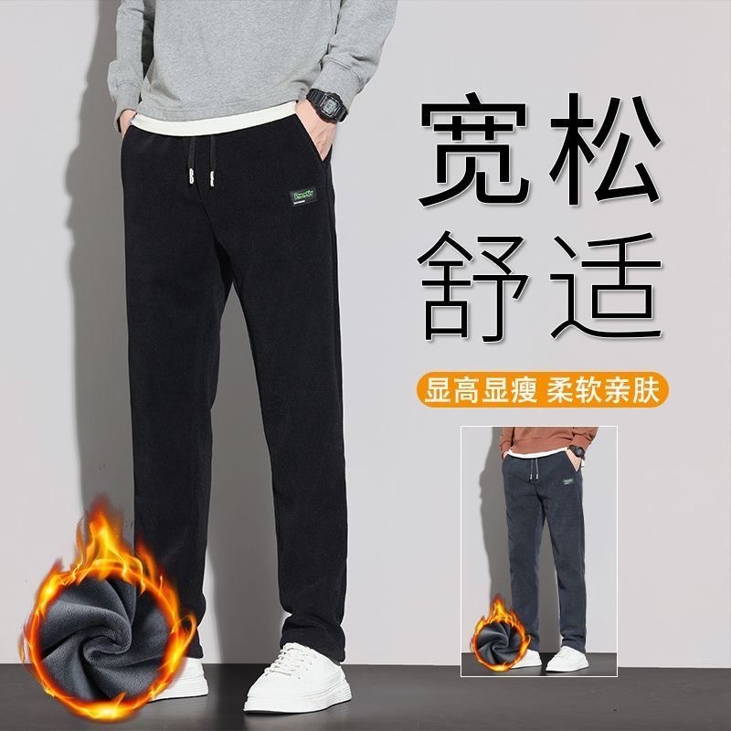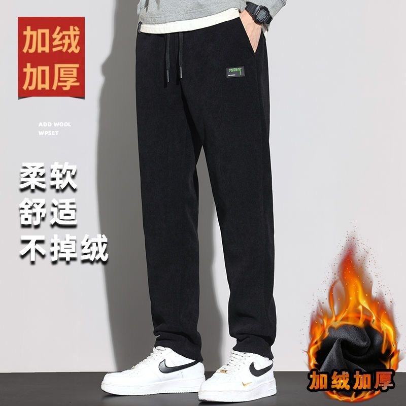 秋冬新款加绒保暖休闲裤子男士灯芯绒直筒宽松大码运动长裤批发潮