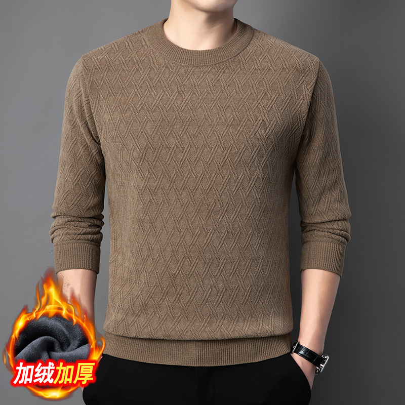 加绒加厚男士欧棉卫衣秋冬季新款圆领提花针织衫中年休闲保暖上衣