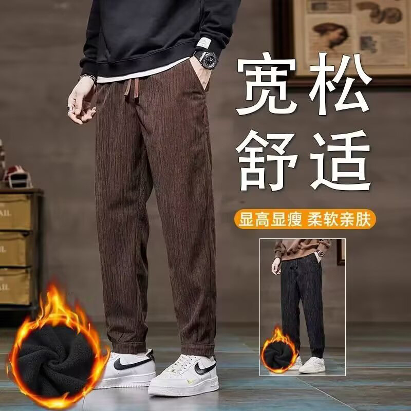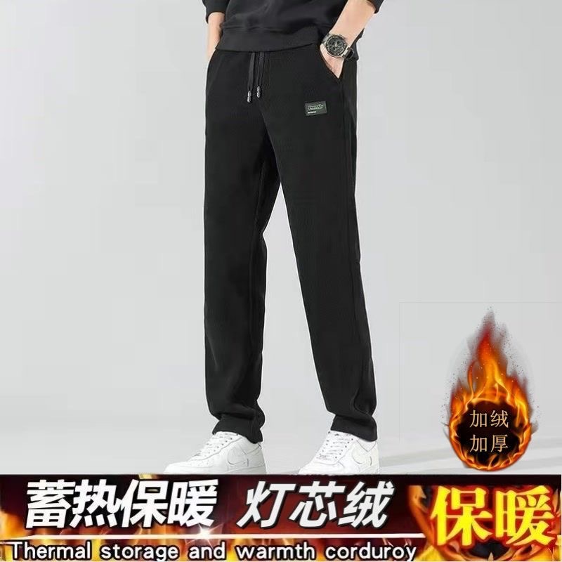 休闲束脚裤男士2025新款加绒加厚修身运动长裤冬季保暖灯芯绒裤子