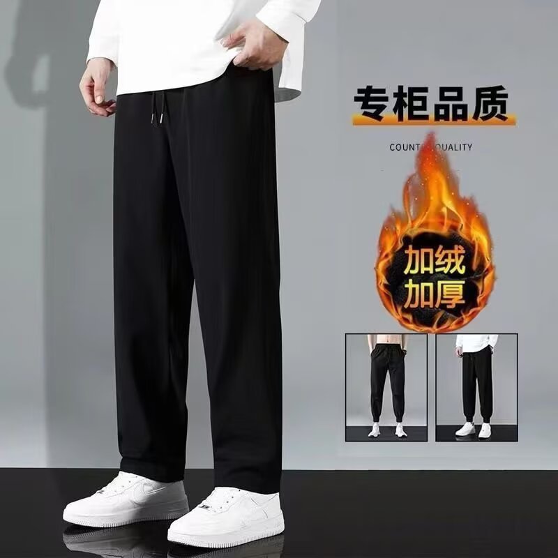加绒保暖直筒秋冬季男士休闲裤大码修身运动裤韩版潮流宽松长裤子