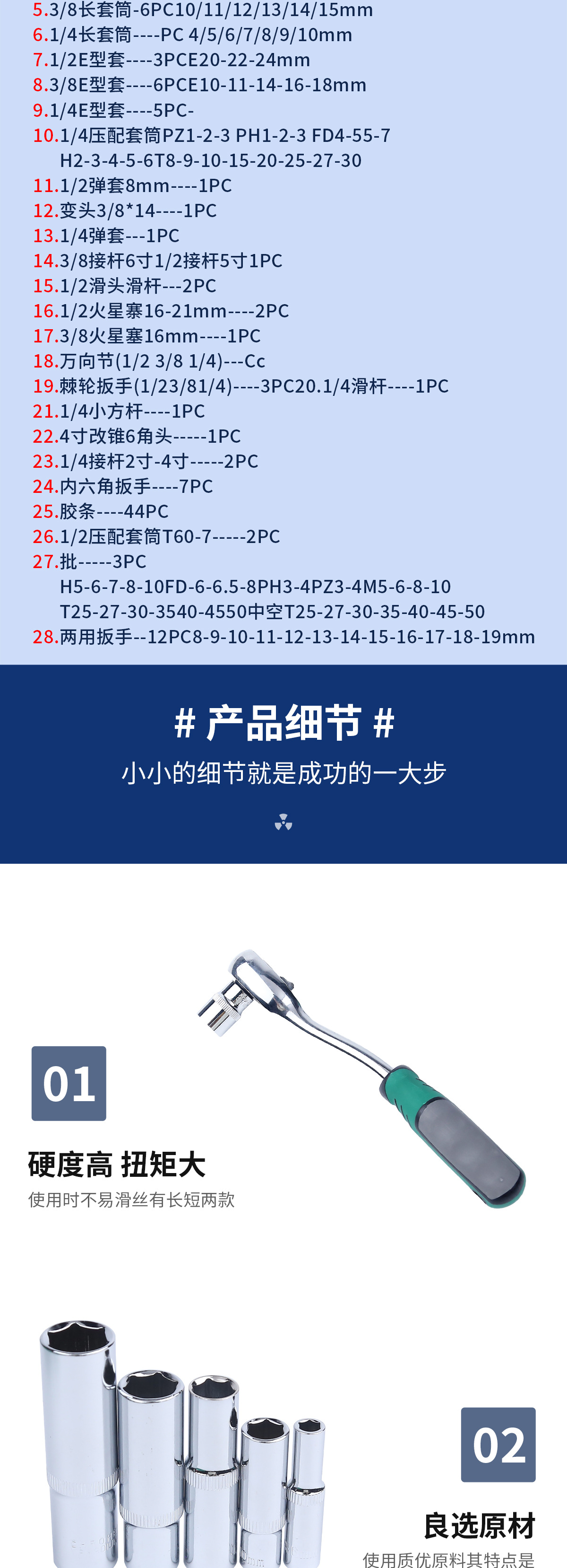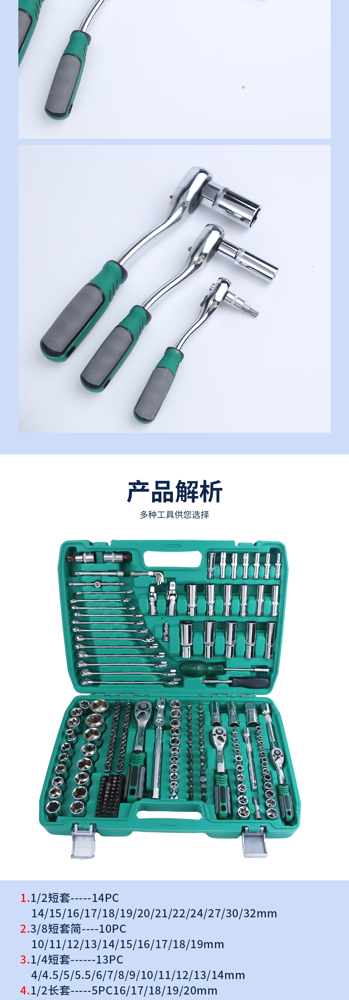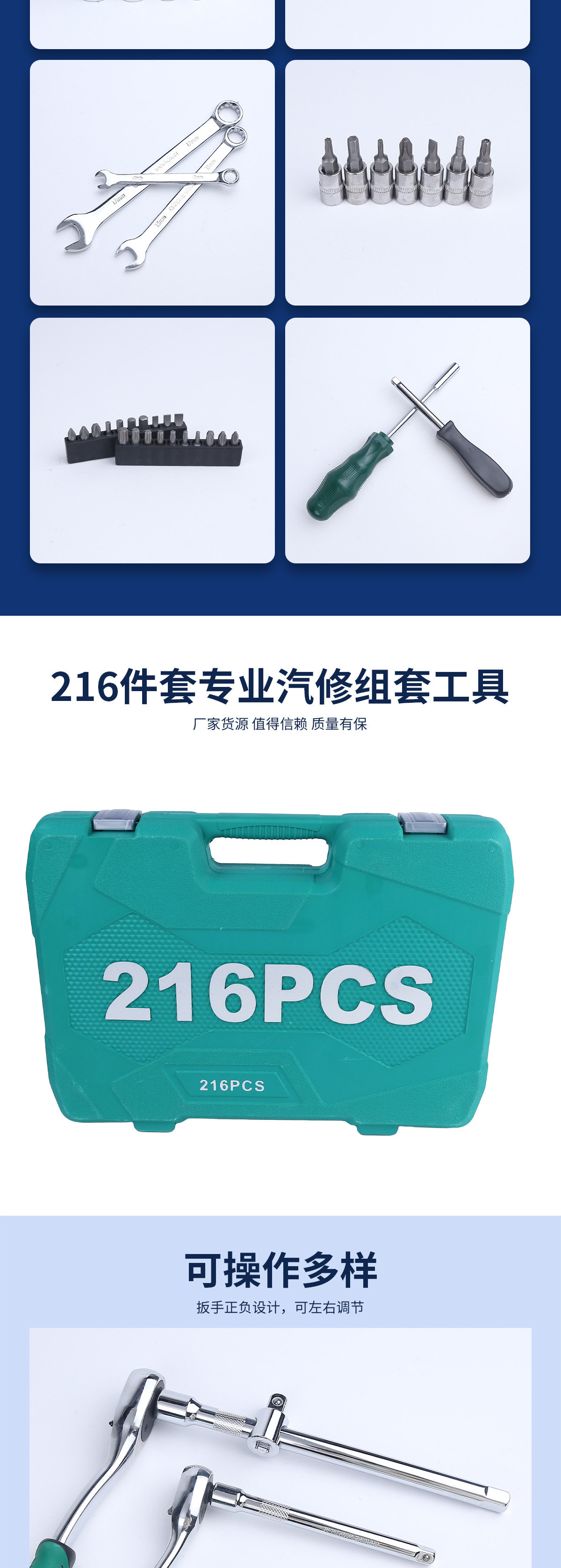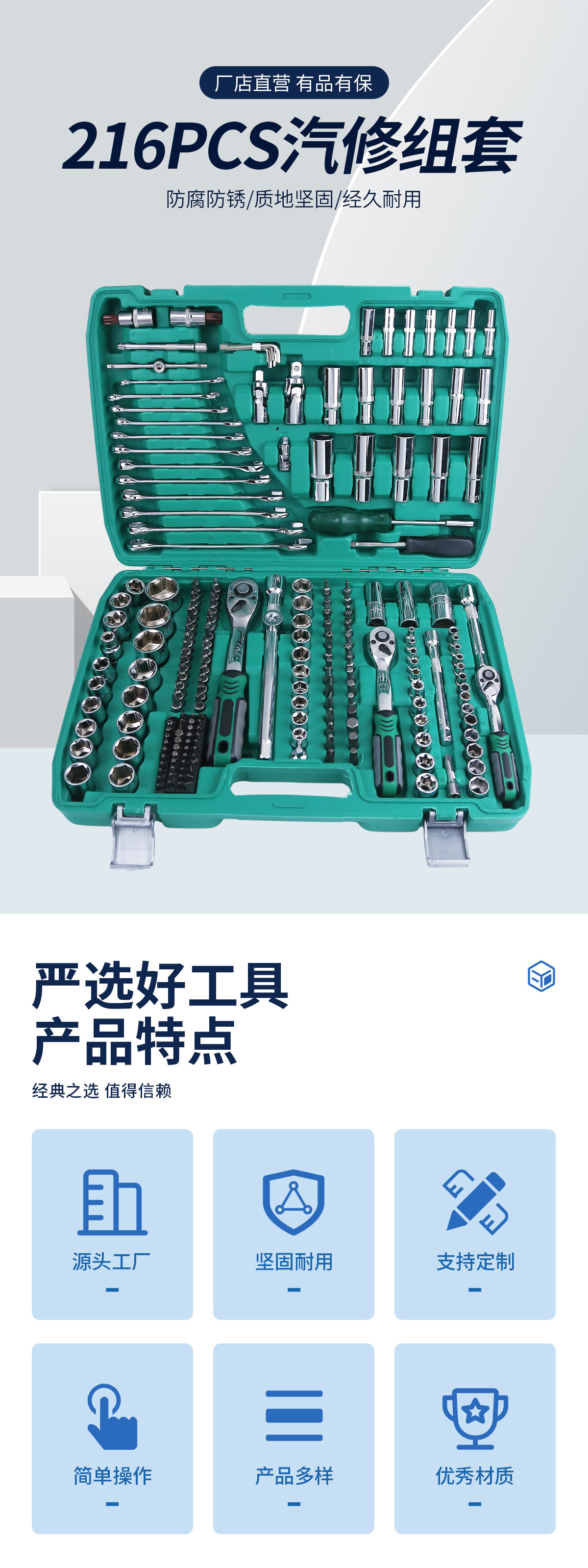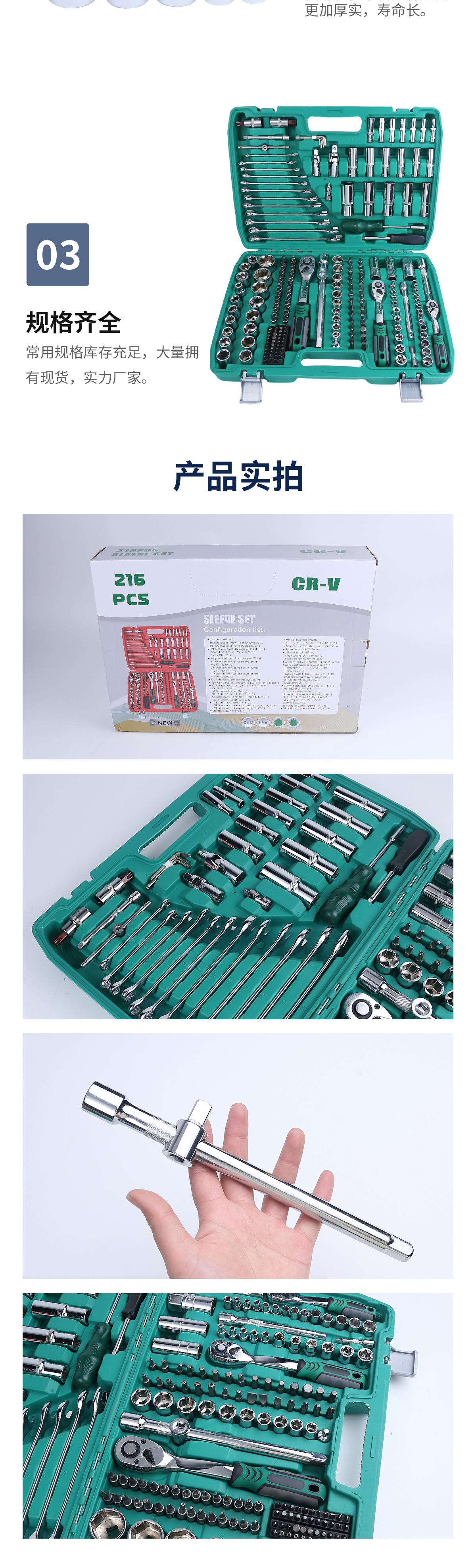 216件汽修组合工具套装(72T)便携含套筒扳手螺丝刀家装维修多场