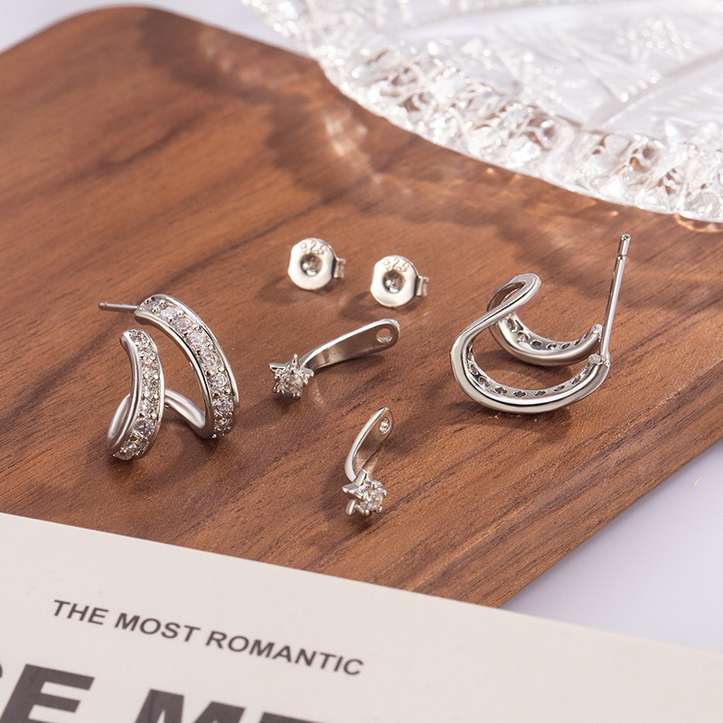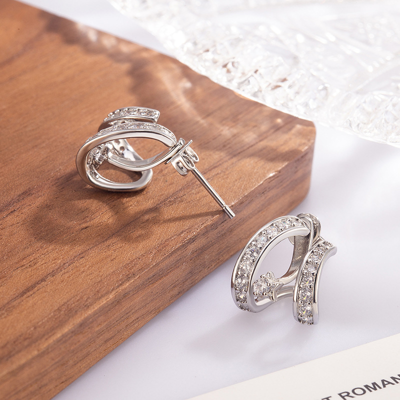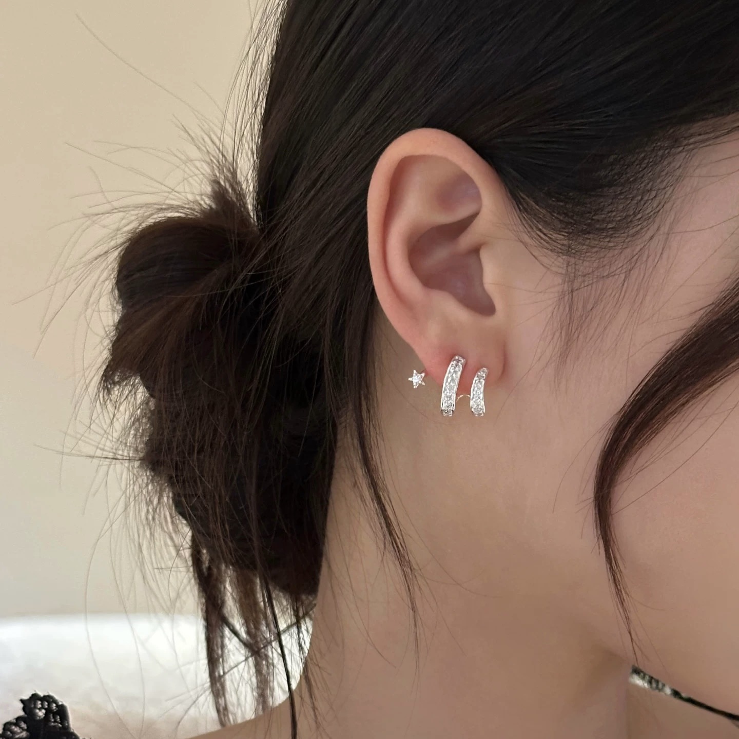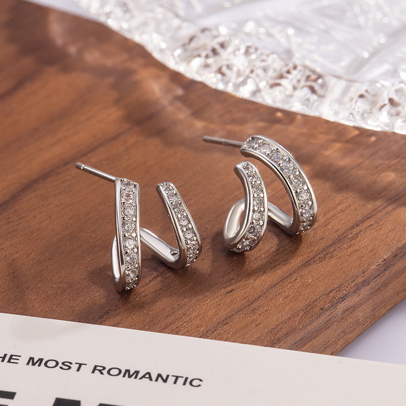 2026新款双层锆石排钻耳扣百搭轻奢女日常精美时尚女耳饰品