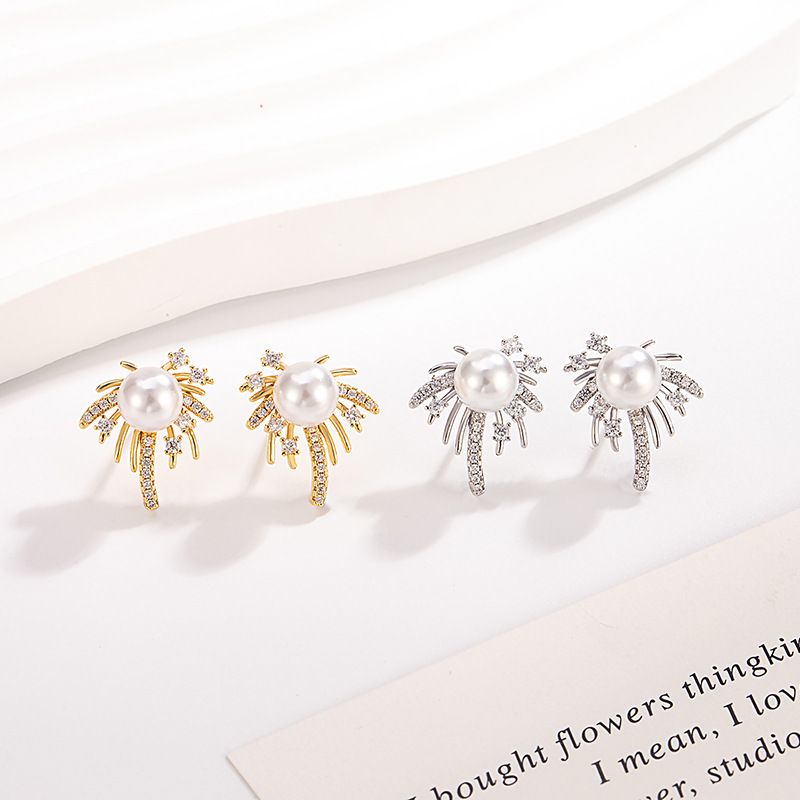 韩系珍珠闪锆烟花耳钉女精致小巧耳环轻奢高级感独特漂亮气质耳饰