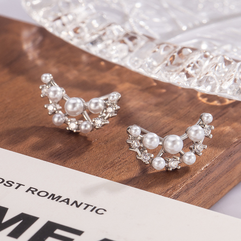 新款法式优雅镶钻蕾丝边珍珠耳扣轻奢高级感气质精致女耳饰品