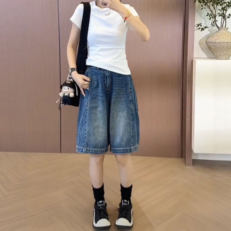 女性のためのプラスサイズのデニムショートパンツ夏 2025 新しい梨型ボディミッドパンツファット mm スリムハイウエストルーズ 5 点パンツ