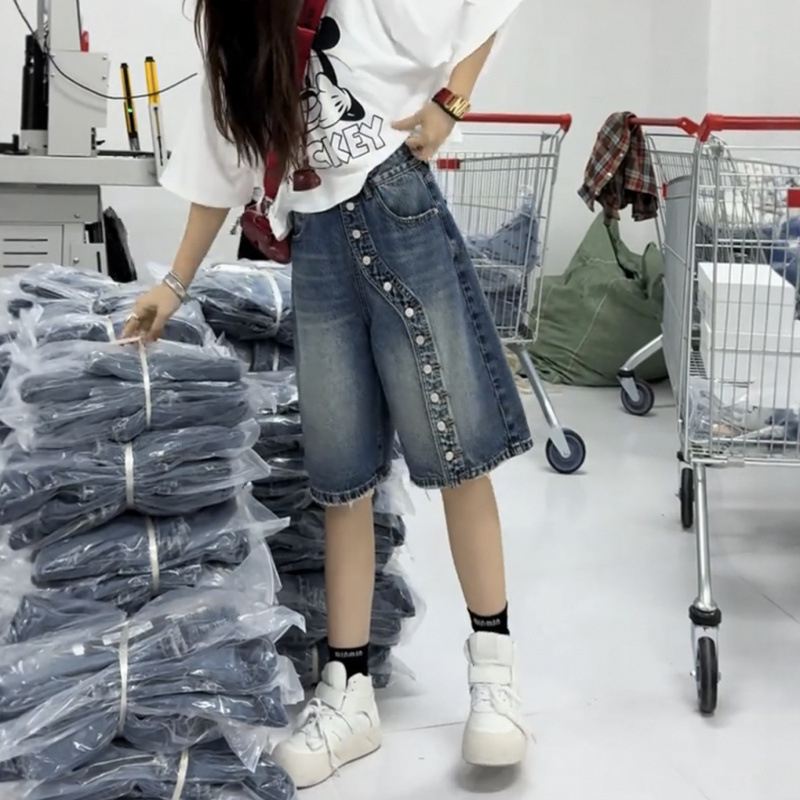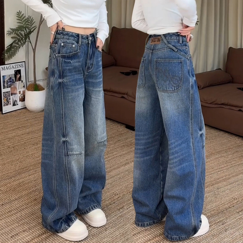 女の子用デニムパンツ 夏2025新作 子供用ストレートワイドパンツ 女の子用秋服パンツ 中学生向け