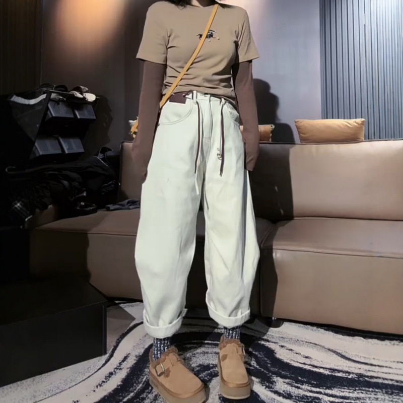 外国貿易品質オリジナルルーズ大きいサイズランタンジーンズ女性用 2025 新しいワイドレッグスリム七分スカート女性用