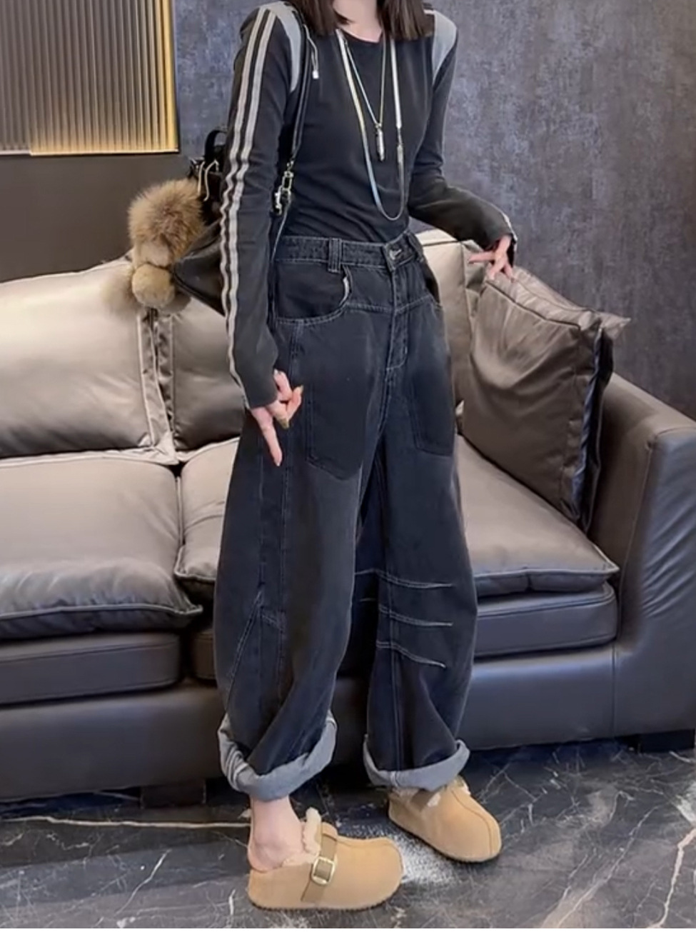 颜色 黑灰色,黑灰色【加绒加厚】
