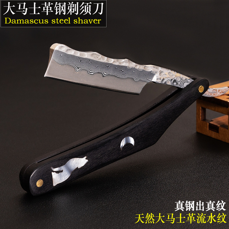 跨境男士修容老式手动剃刀大马士革钢折叠剃须刀刮胡刮脸刀剃头刀