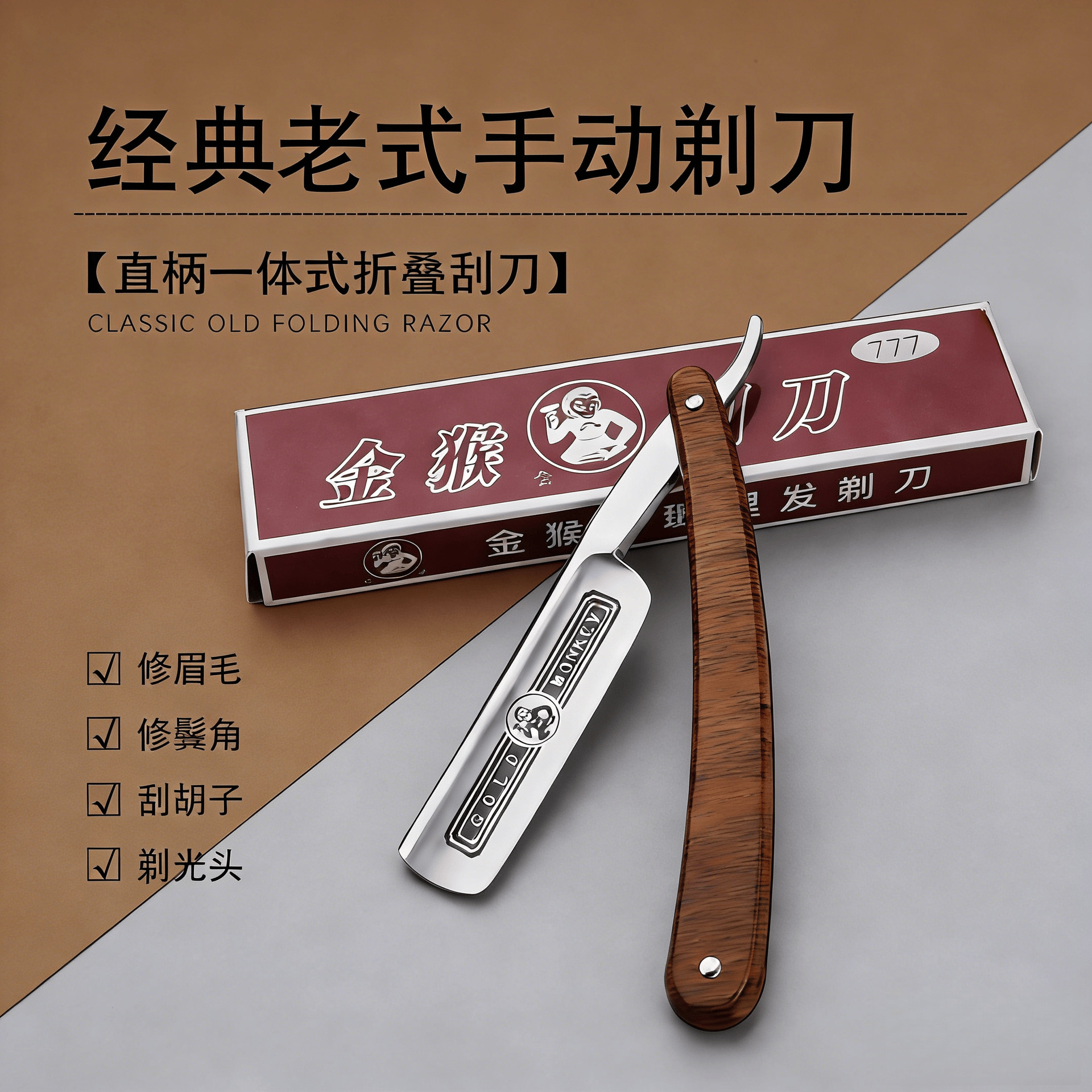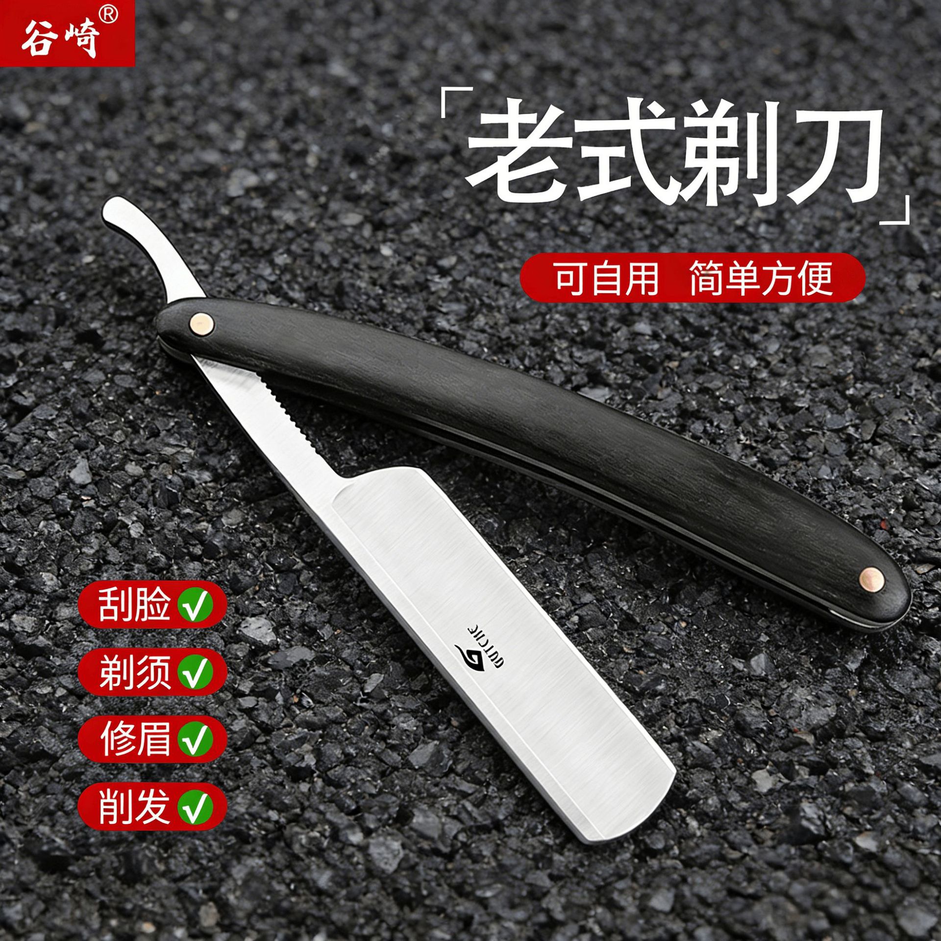 谷崎老式剃刀男士刮胡刮脸刀剃头刀手动一体修面刀理发刮毛直剃刀