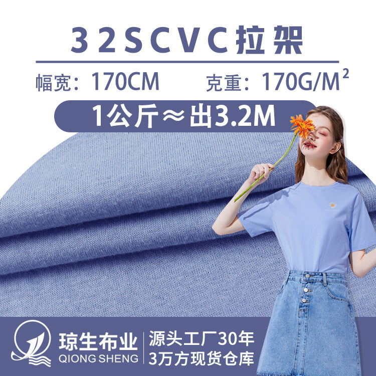 32番手CVCラッフルポリエステル生地170gポリエステル綿混紡通気性片面平織汗取り生地微弾性ニットTシャツ生地