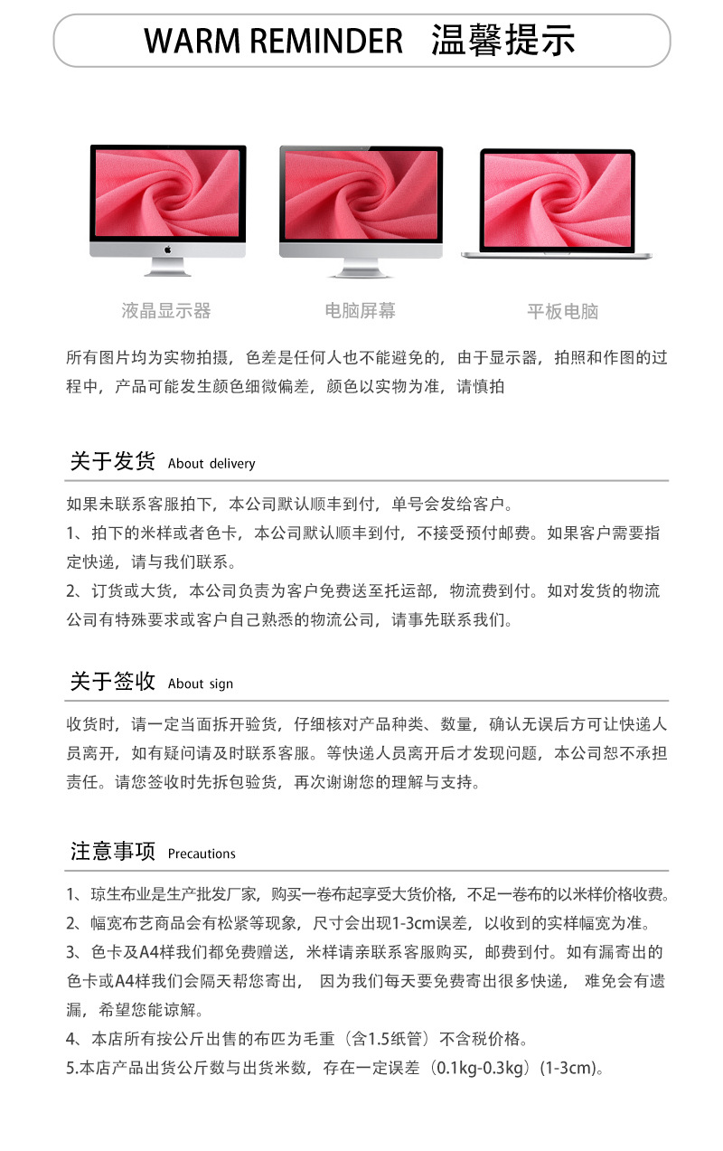 规格型号 米样(1件=1米)拍下后不支持退换,大货价(27kg起拍)