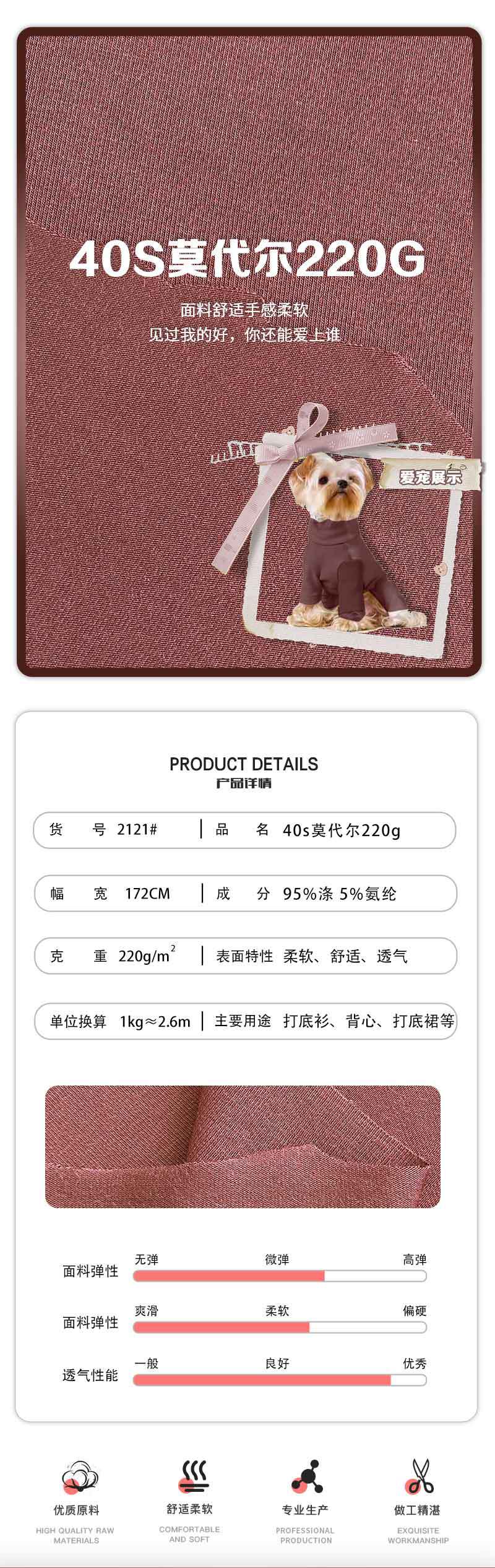 40s莫代尔面料人棉服装猫咪犬狗汗布220g背心宠物布料
