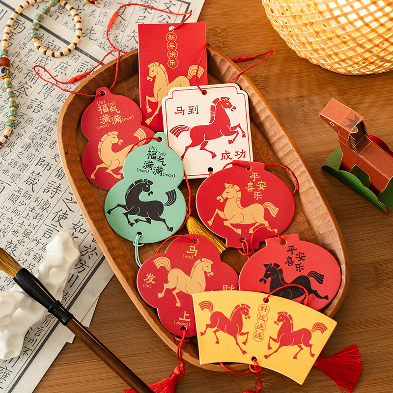 2026创意马年挂饰带流苏新年绿植花卉装饰小挂卡加厚异形双面吊牌