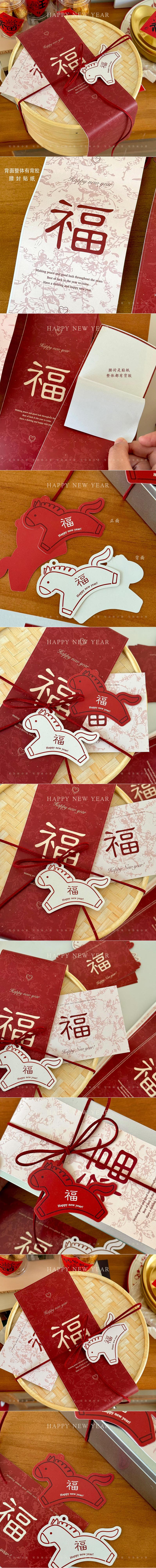 宅急妹小屋马年福字腰封吊牌卡片新年春节喜庆中式礼品包装不干胶