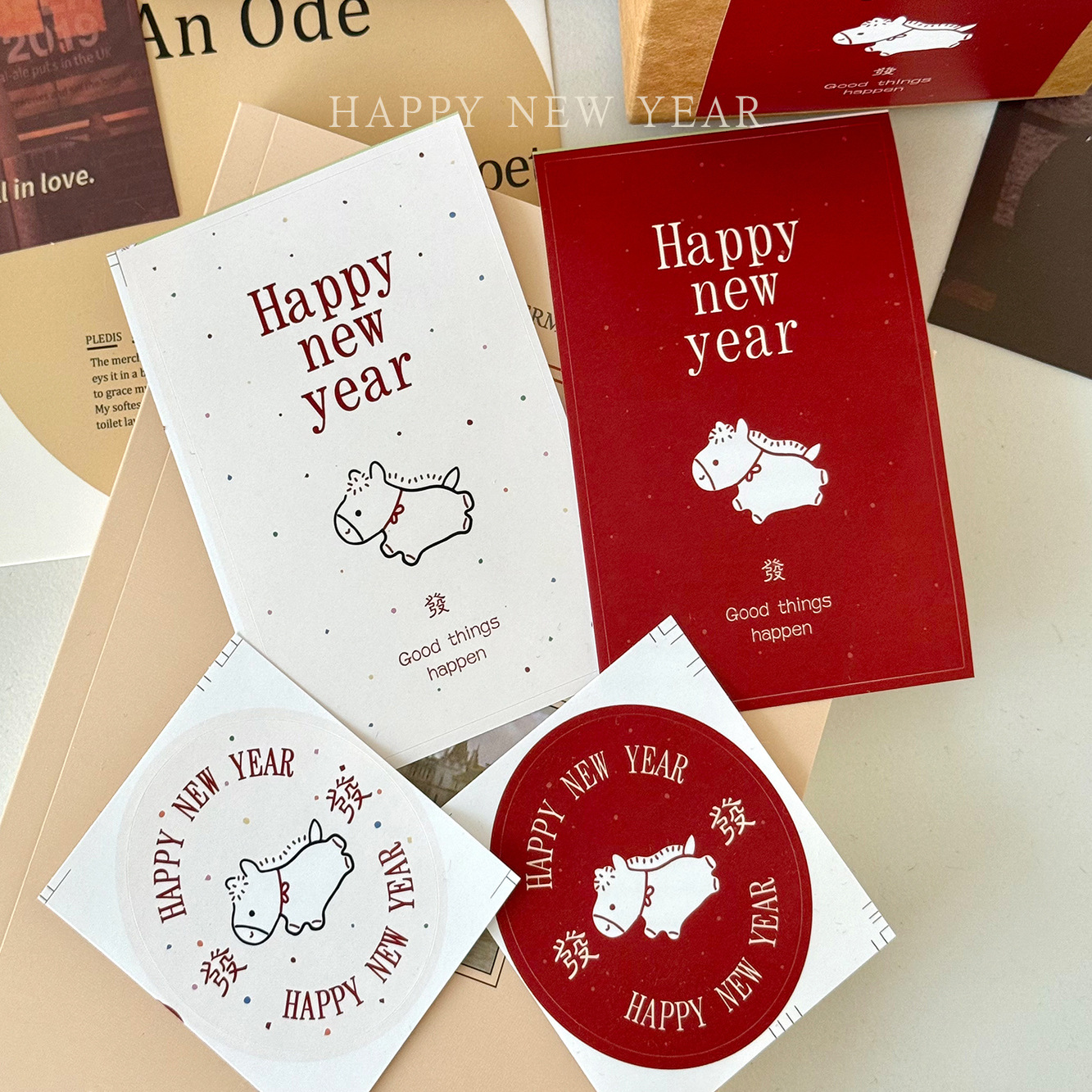 2026马年新年祝福喜庆贴纸年货烘焙饼干糖果包装盒不干胶封口贴