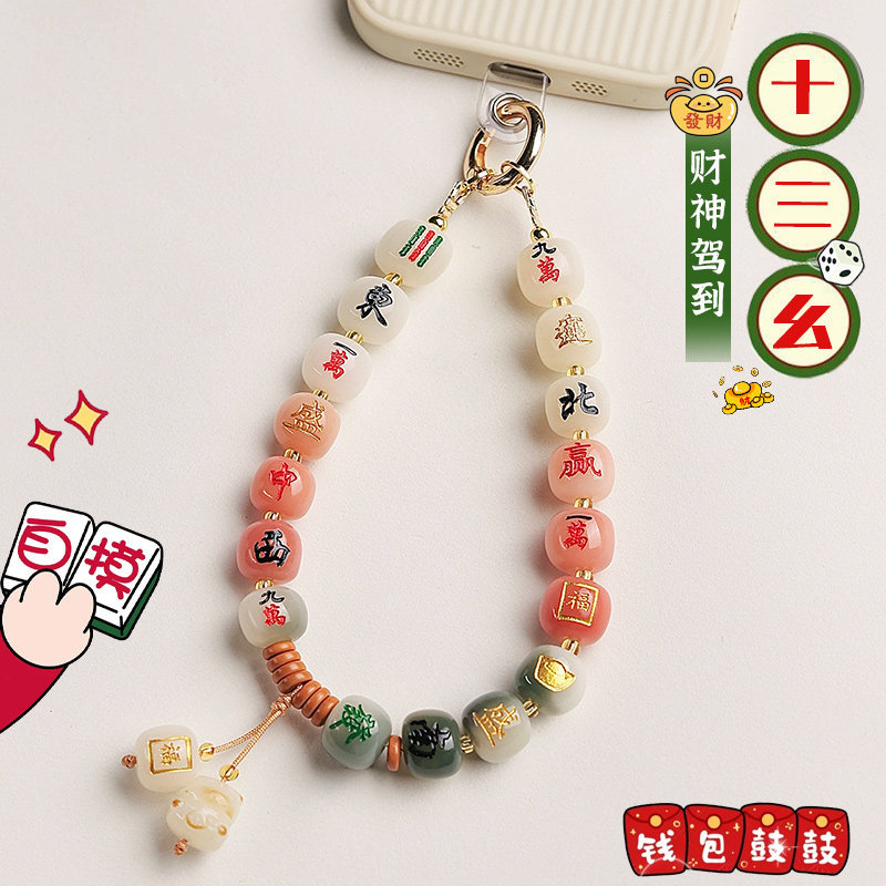 天胡国风菩提麻将手机链挂绳手腕装饰串珠挂饰携带手机壳挂件批发