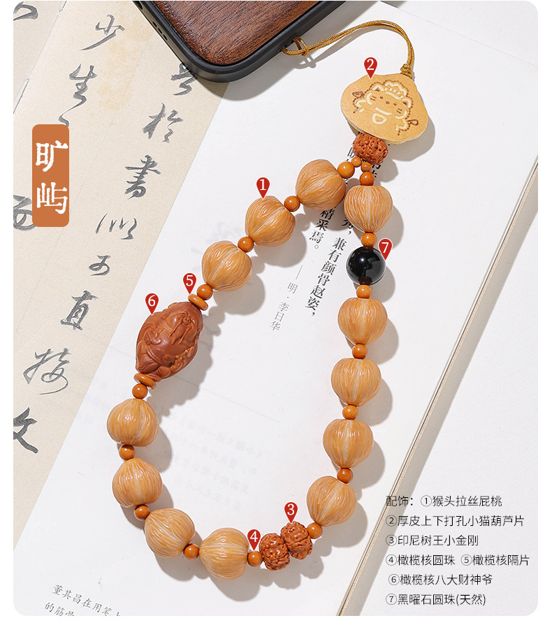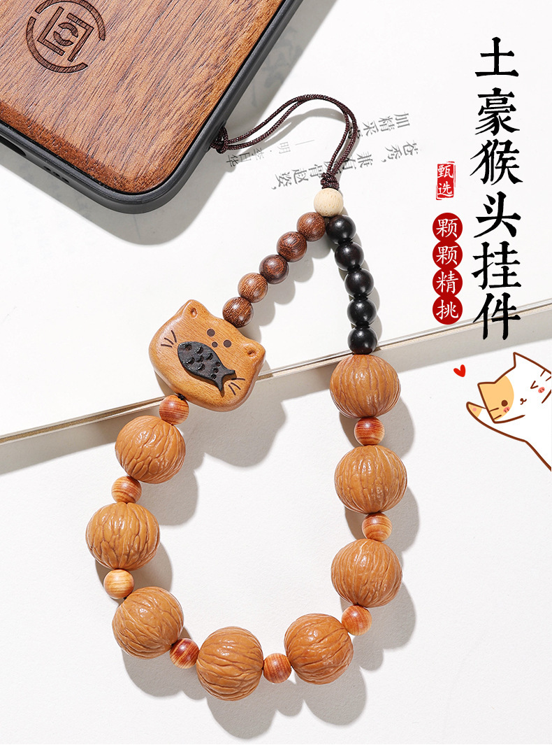 精雕猴头葫芦防丢手机挂件单圈手腕挂绳手机链核桃佛珠女文玩批发