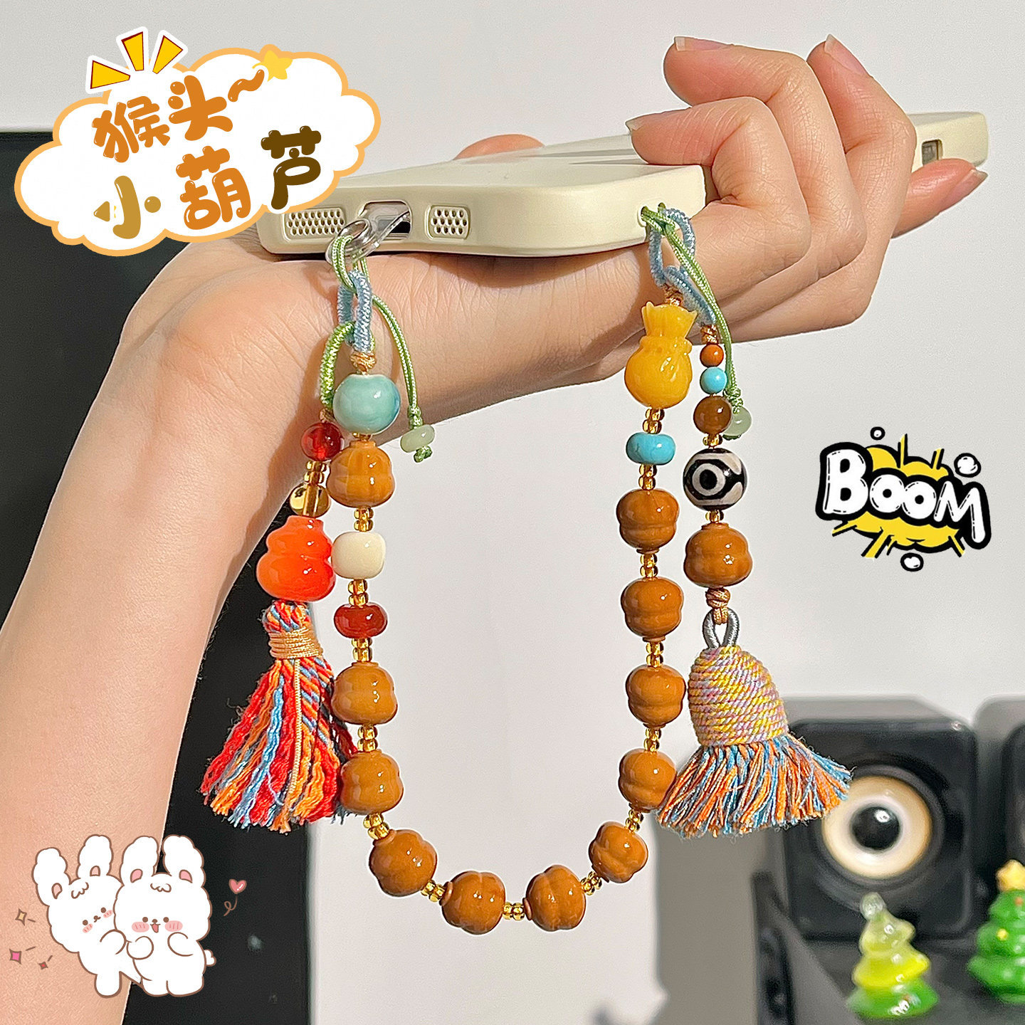 精雕土豪猴头手机挂绳文玩草里金葫芦手腕款盘玩手机链防丢挂件