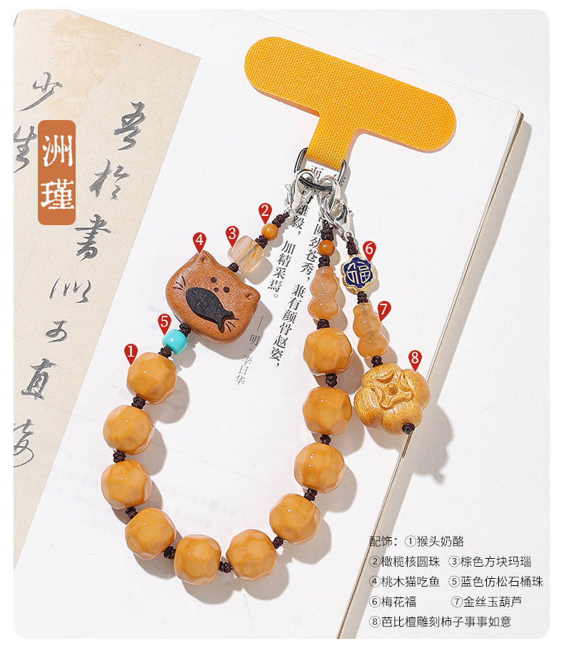 柿柿如意菩提手机链高端串珠琉璃小柿子手腕款携带手机挂绳挂件
