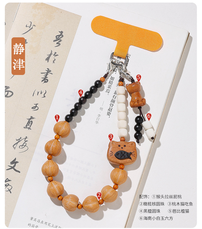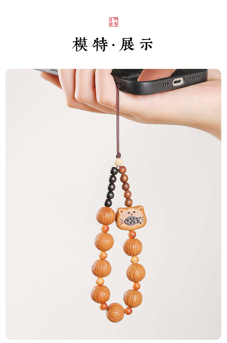 天然风化菩提手机链新中式国潮招财猫夹片款手腕款手机挂饰挂件