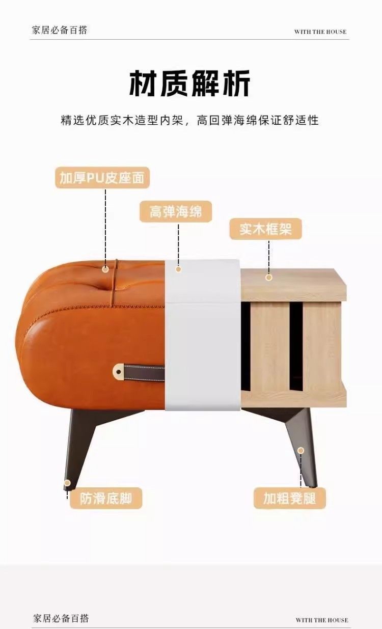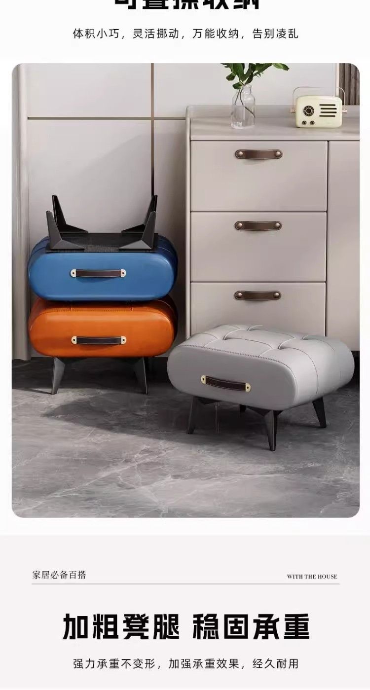 换鞋家用门口凳子软包网红脚踏轻奢茶几矮凳沙发客厅入户简约软座