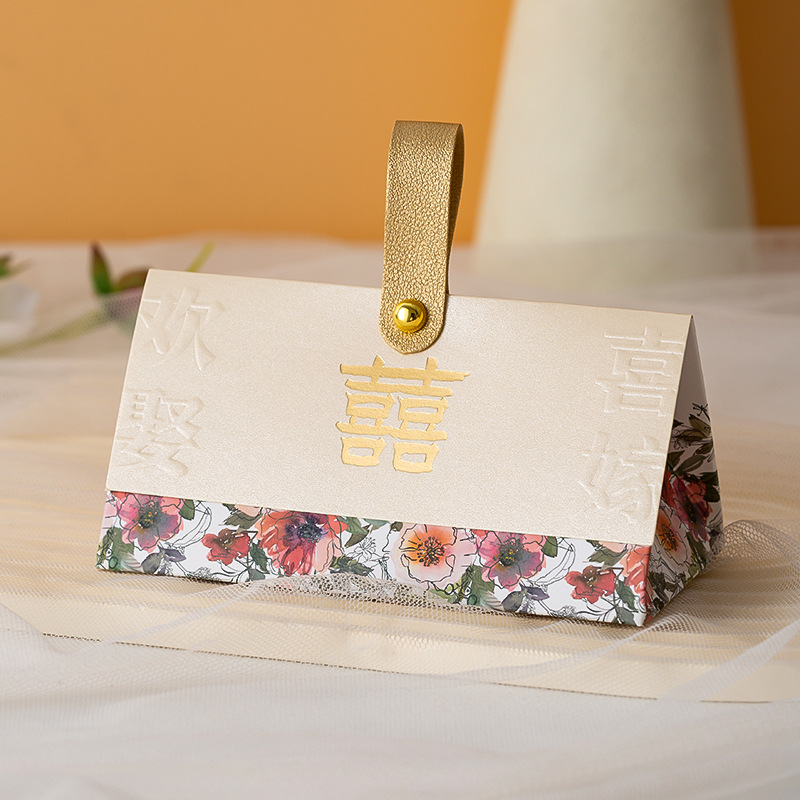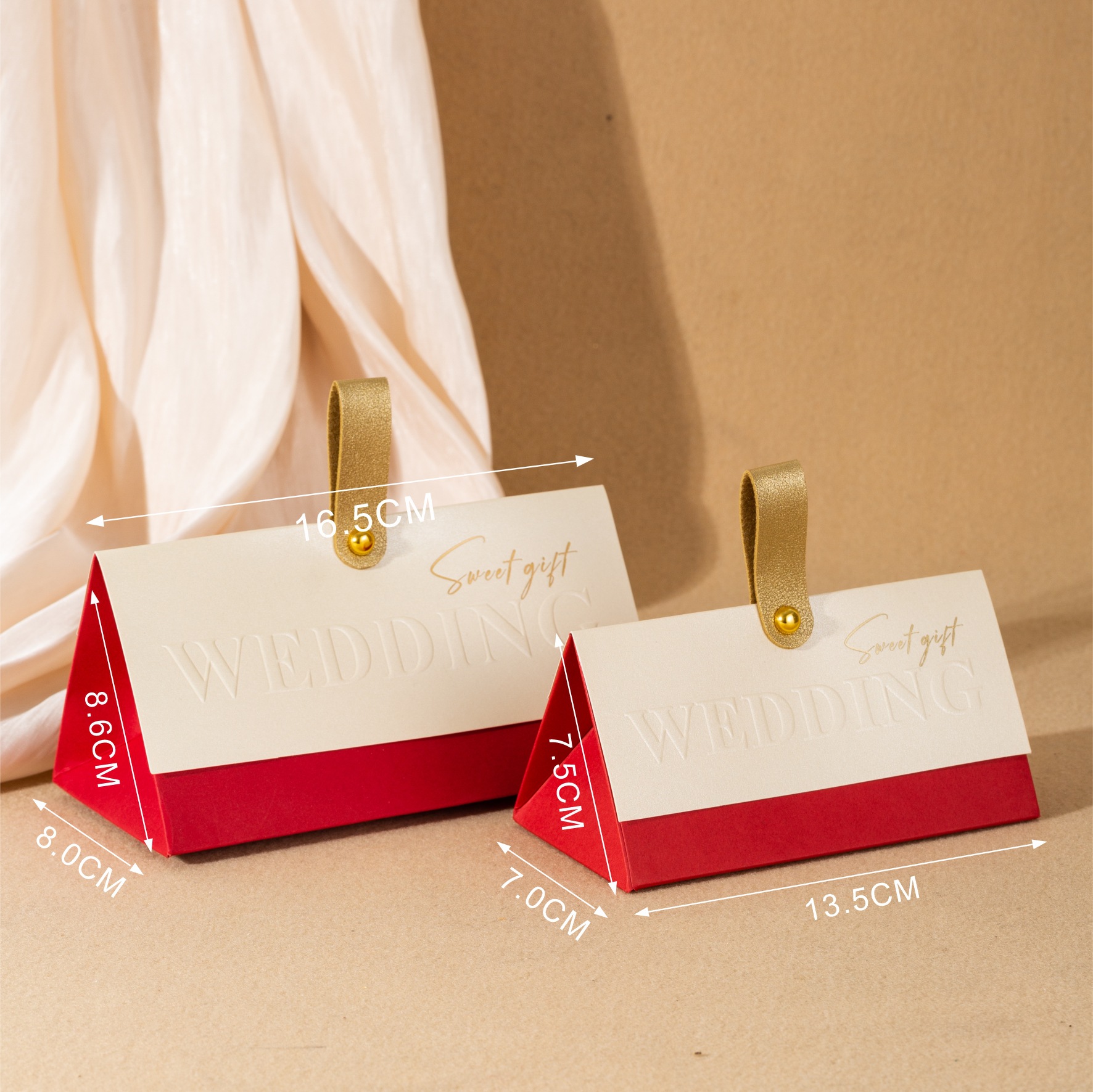 喜糖の箱の結婚専用の卸売りの結婚式のお土産の皮提三角の喜糖のキャンディーの箱の箱の空の箱