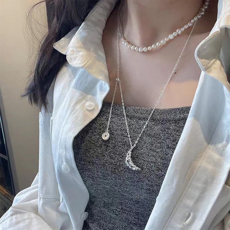 简约甜美牛角包甜甜圈项链女轻奢优雅时尚气质通勤百搭颈链毛衣链
