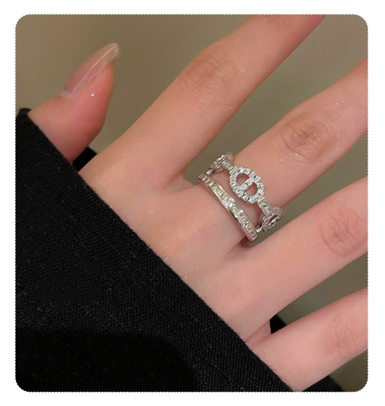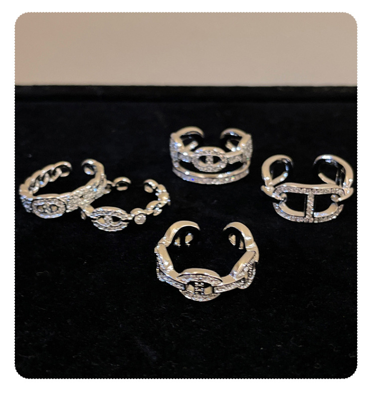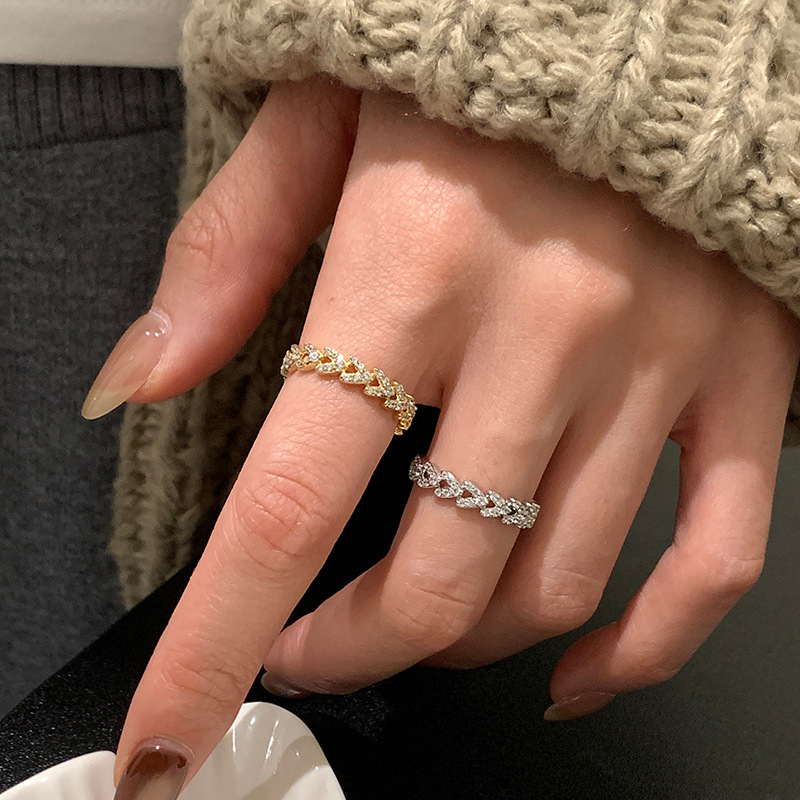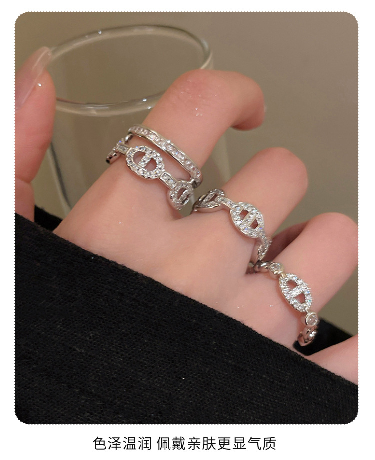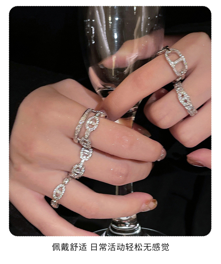 气质微镶锆石金属链条戒指女韩国简约百搭指环冷淡风复古轻奢戒子