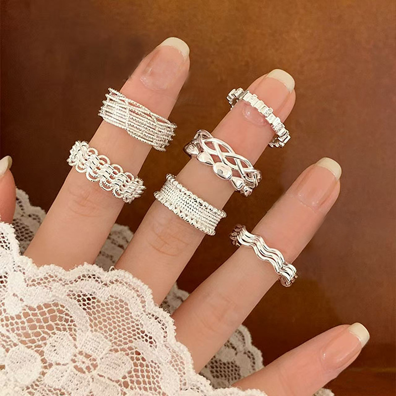 2025新款韩版蕾丝几何宽面戒指女百搭时尚个性开口可调节指环女