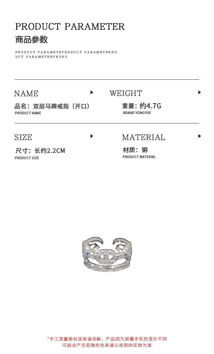 颜色 双层马蹄戒指(开口),猪鼻子款,马蹄扣款,猪鼻子款.,金色猪鼻子开口戒