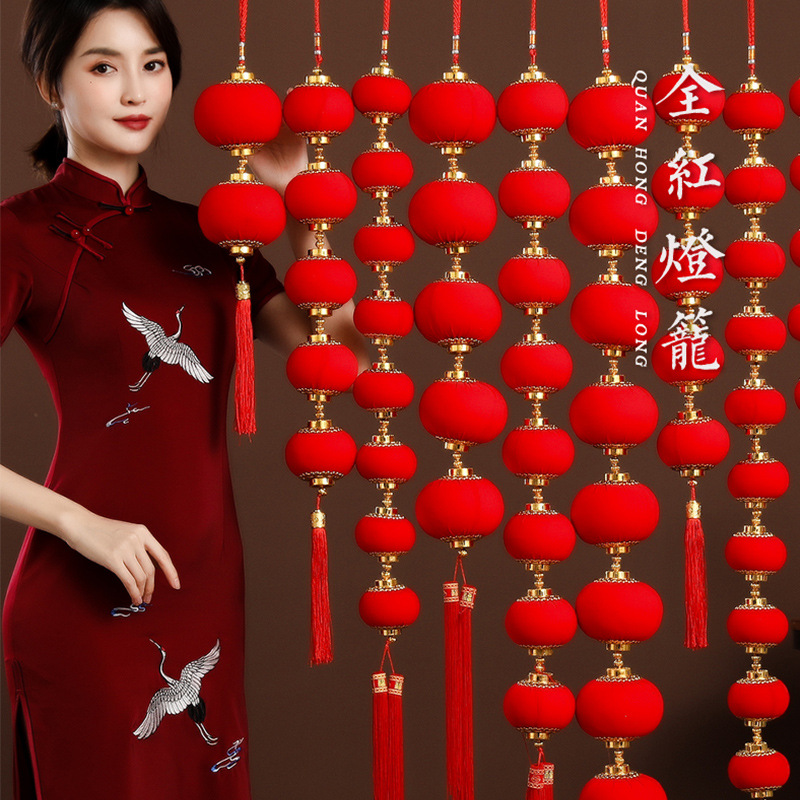 新年植绒灯笼挂饰中式红灯笼过年盆景挂件装饰春节户外喜庆小灯笼