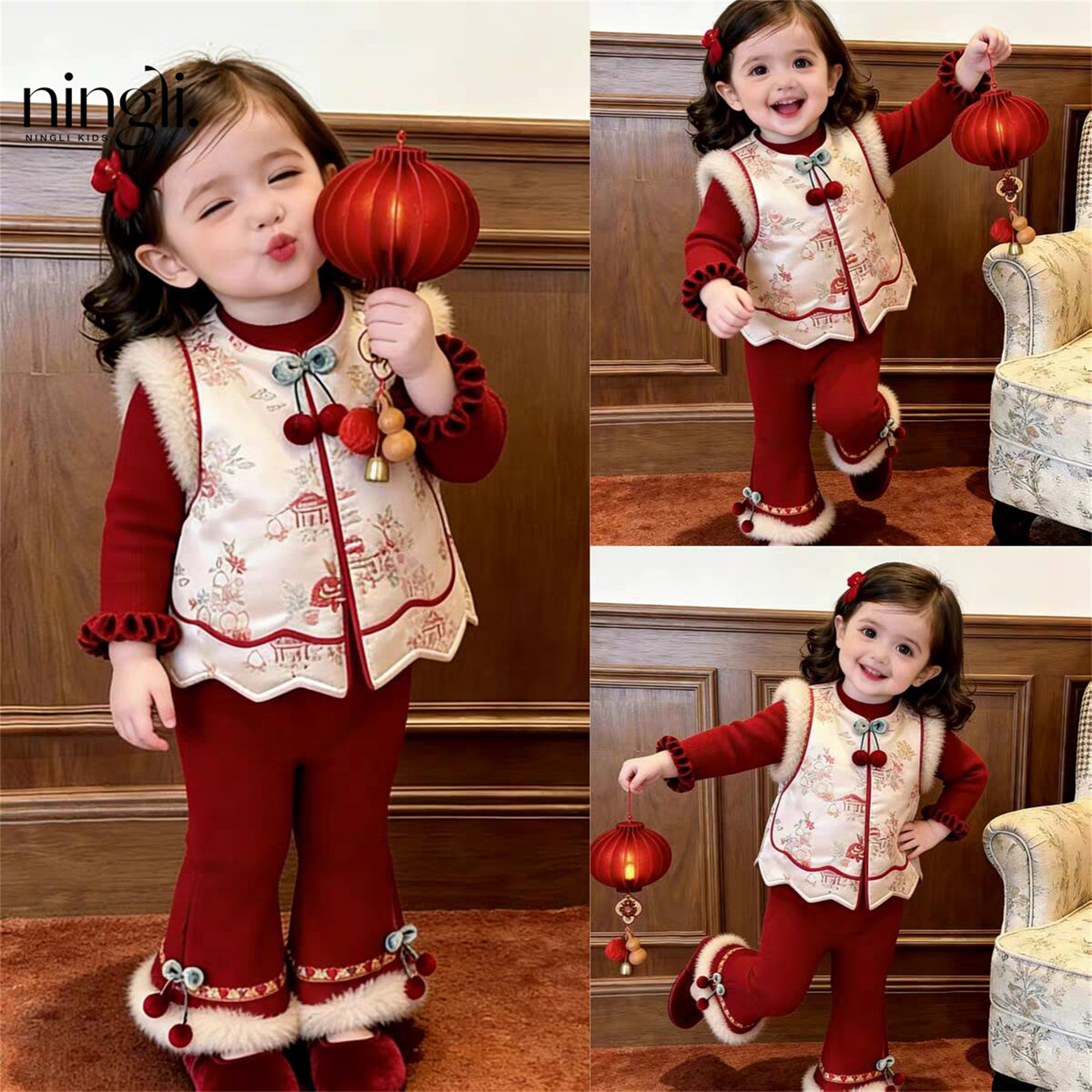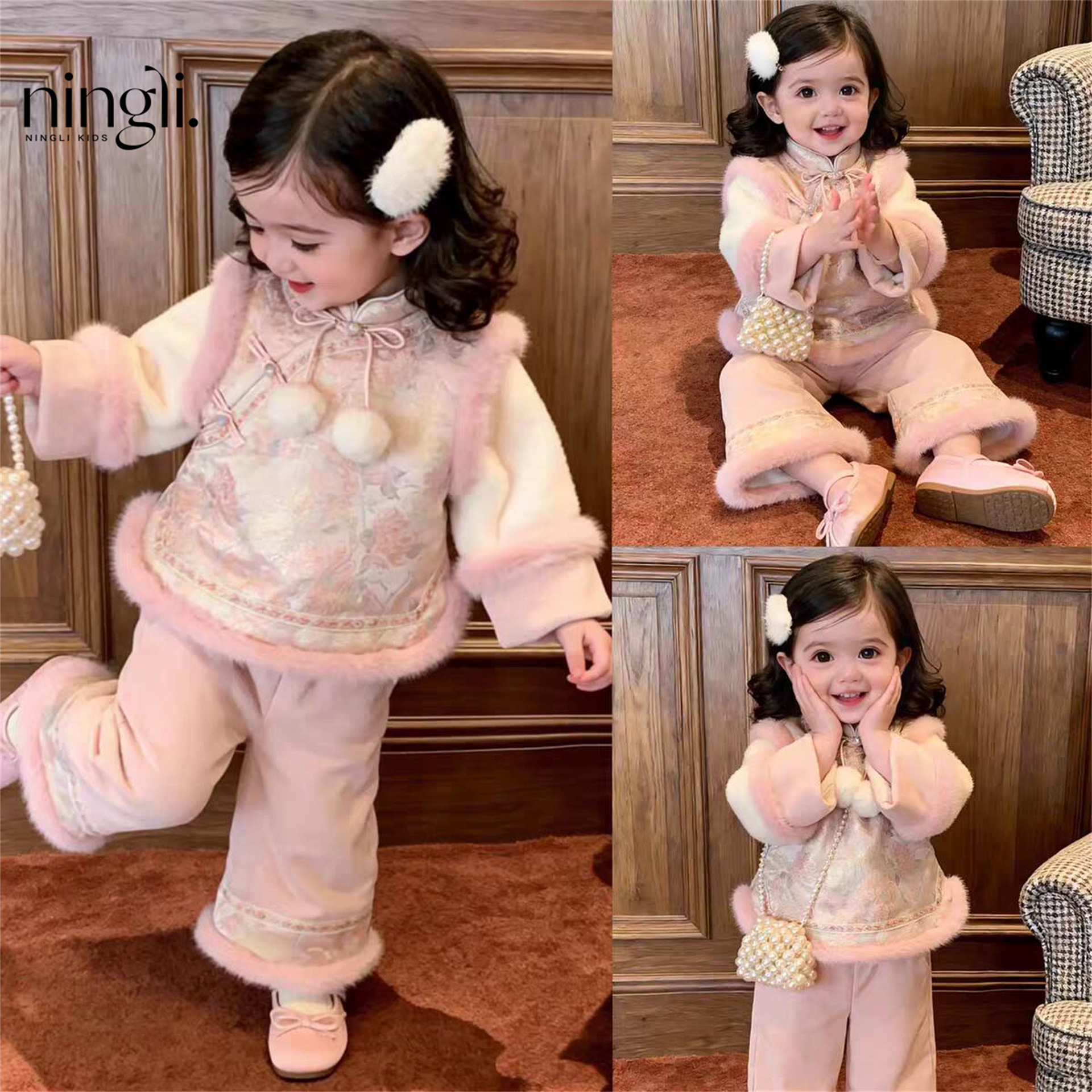 【柠里】女童拜年服套装26新款小童过年衣服女宝宝新年国风两件套