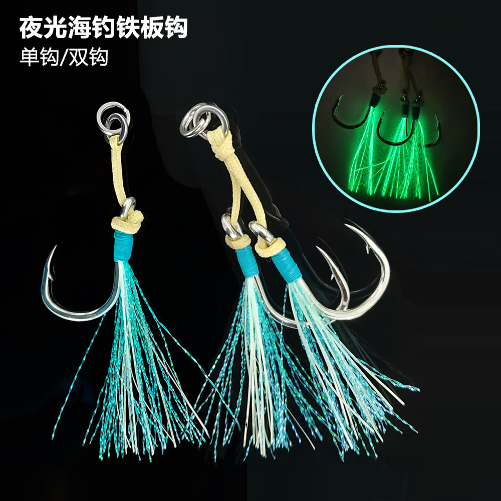 夜光海钓铁板钩 双钩/单钩 船钓钩凯夫拉线亮丝钩奥金铁板钩A48