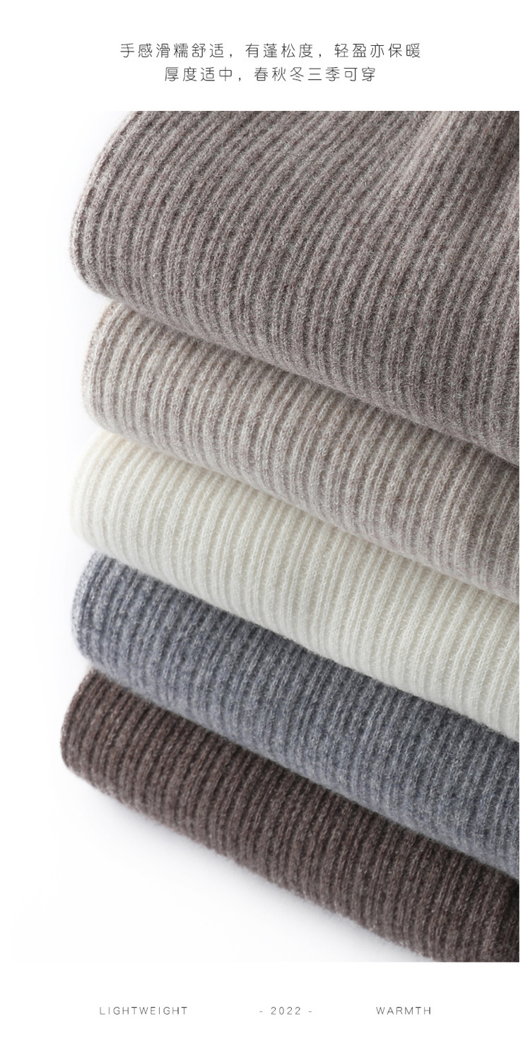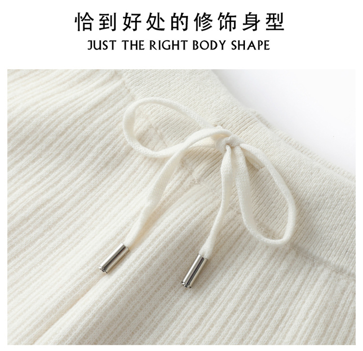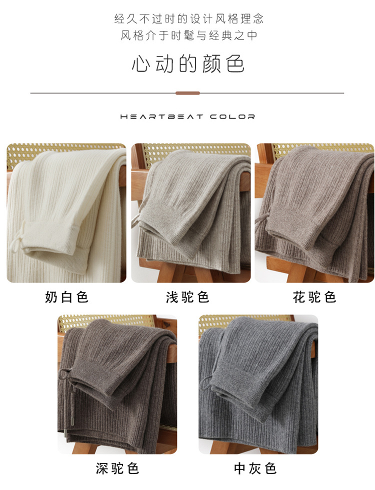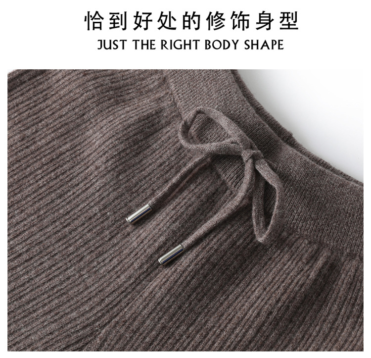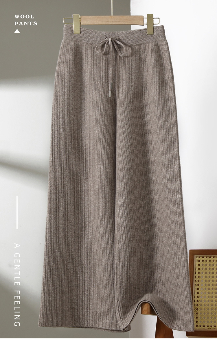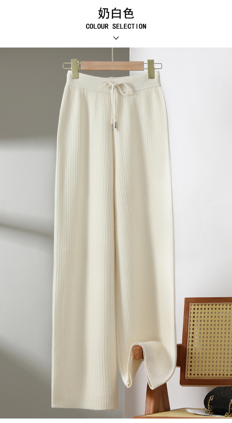 2025年秋冬新款纯羊毛针织休闲裤女纯色高腰宽松保暖卷边阔腿长裤