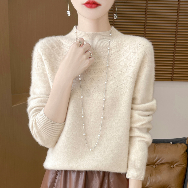2026年早春新作、精織ウールニットセーター、レディース、ハーフタートルネック、長袖、無地、ゆったり、万能、インナーウェア