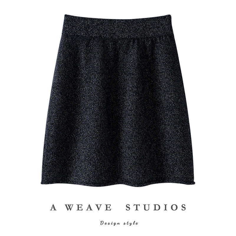 2025年秋冬新款山羊绒针织半身裙女纯色亮丝卷边显瘦设计感短裙