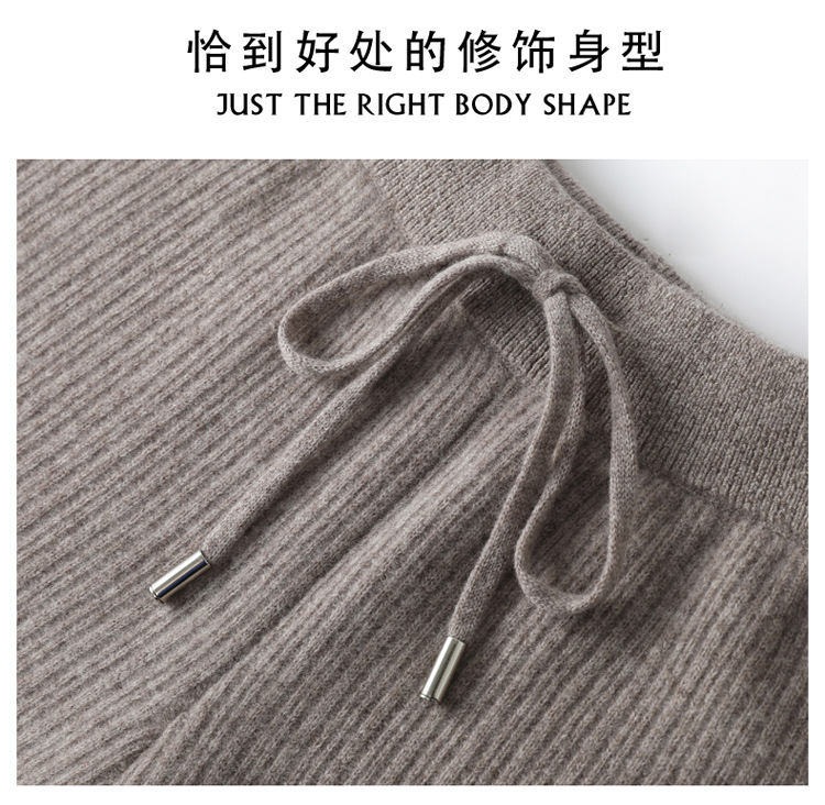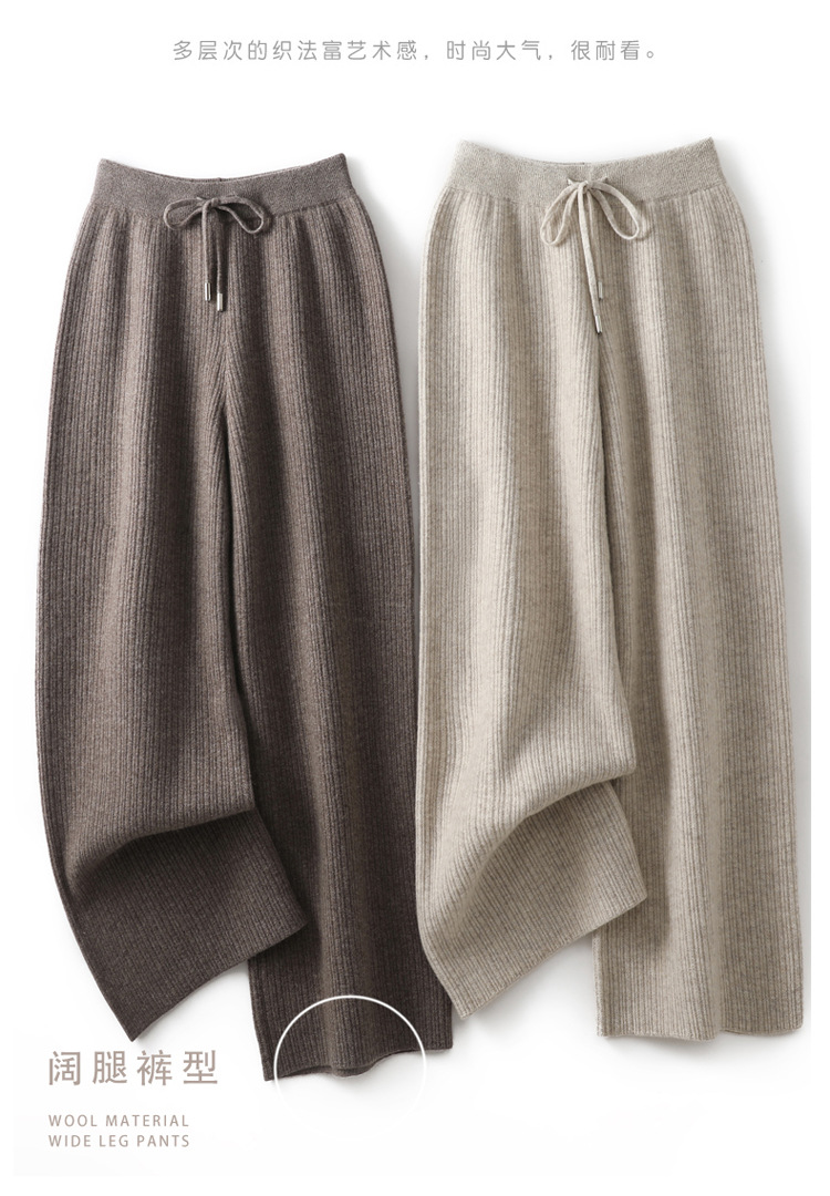 2025年秋冬新款纯羊毛加厚针织休闲裤女竖条提花宽松高腰阔腿长裤
