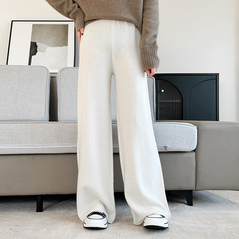 羊绒针织阔腿裤女秋冬羊毛直筒垂坠感毛线加长拖地裤空气云朵裤